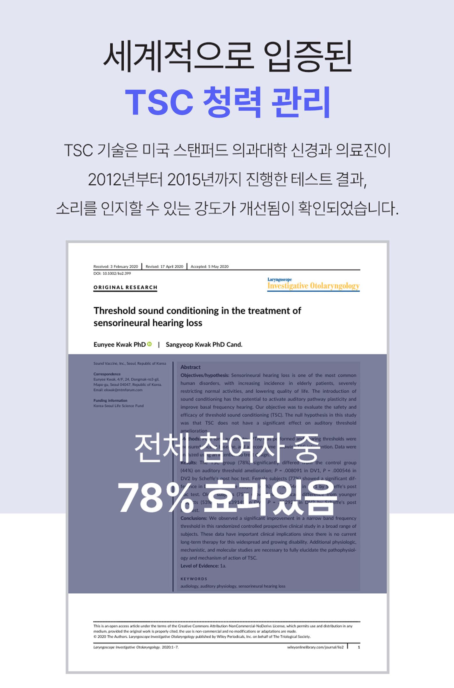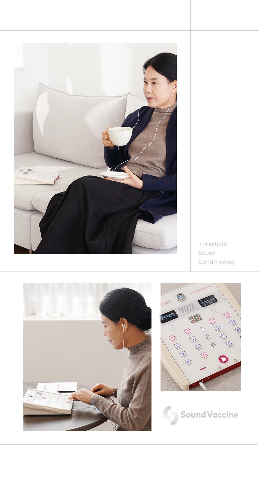 안녕하세요. 사운드백신의 곽은이 대표입니다. 청각 개선 기술을 바탕으로 혁신적인 제품을 개발하여 사람들의 청력 건강을 지키는 데 힘쓰고 있습니다. 특히, AI 알고리즘을 활용한 TSC(Threshold Sound Conditioning) 기술을 통해 청력 회복과 예방을 위한 솔루션을 제공하고, 이 기술을 의료 현장과 소비자 시장에 성공적으로 접목시키고 있습니다. 청각 기술 분야에서의 깊은 지식과 경험을 바탕으로, 더 나은 삶의 질을 위한 기여를 계속해 나가고 있습니다.