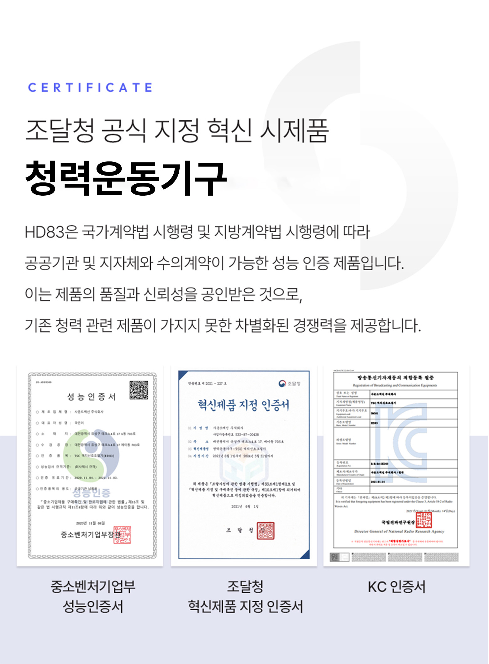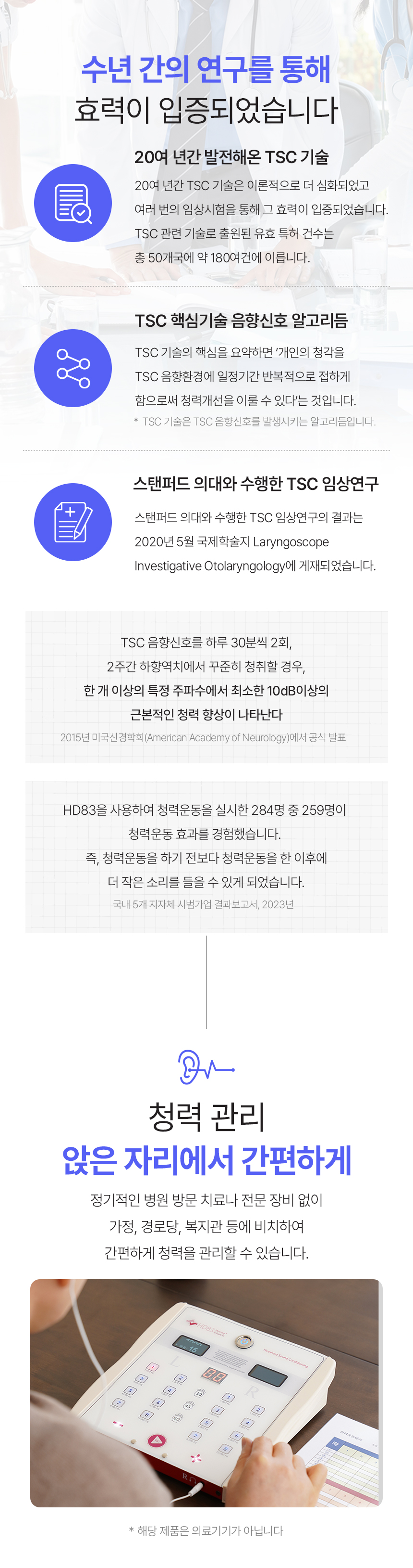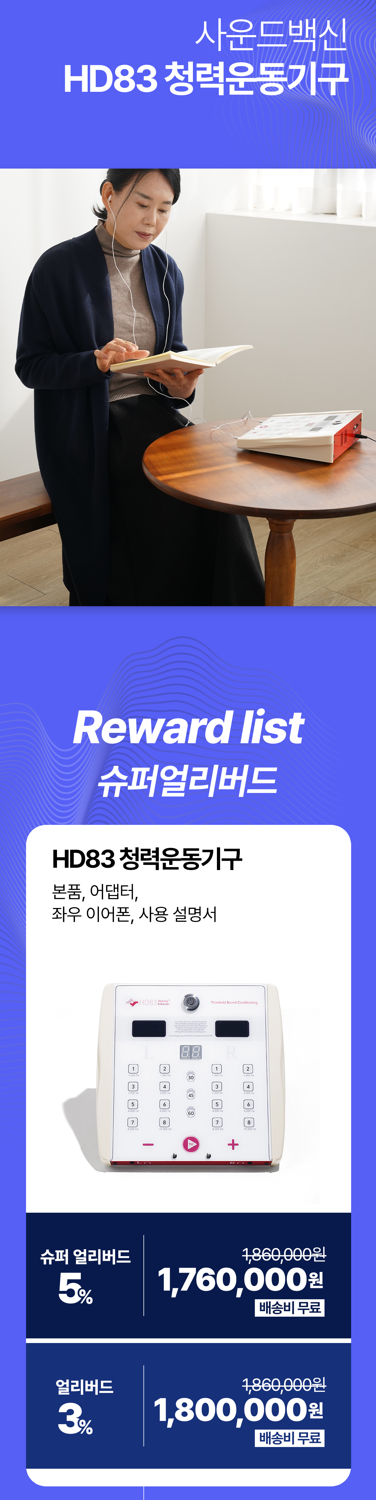 펀딩을 통해 모인 금액은 TSC 청력 회복 기술의 연구 개발에 활용되며, 더 다양한 제품에 적용할 수 있도록 지속적으로 노력할 예정입니다. 이번 펀딩은 와디즈에서만 제공하는 특별한 혜택으로 진행되며, 보다 많은 분들이 쉽고 편리하게 HD83 청력운동기구를 경험할 수 있도록 준비했습니다.