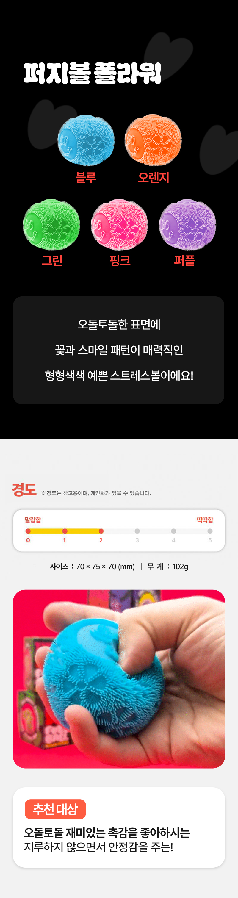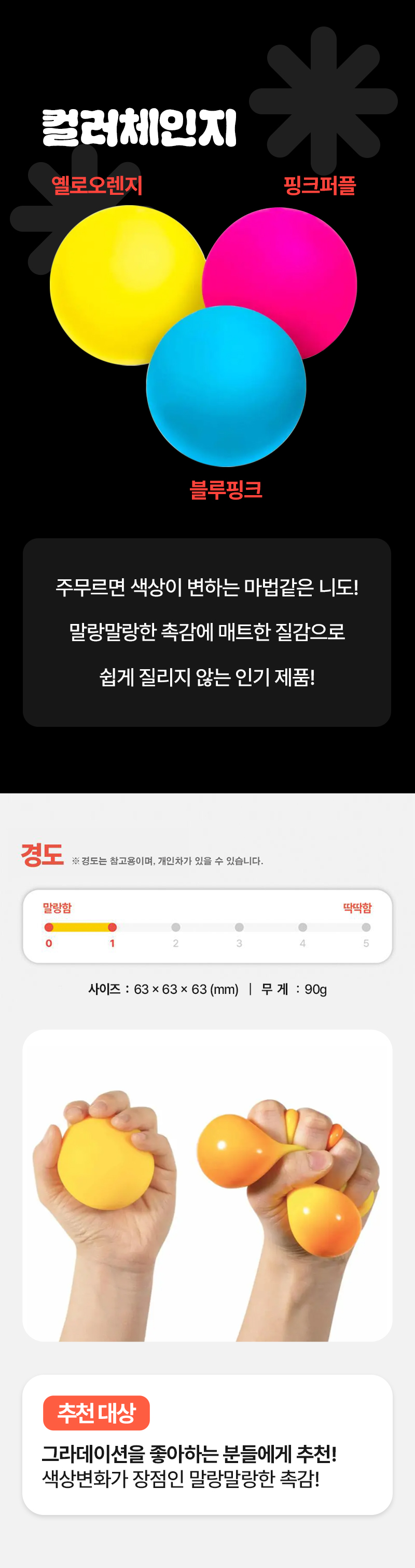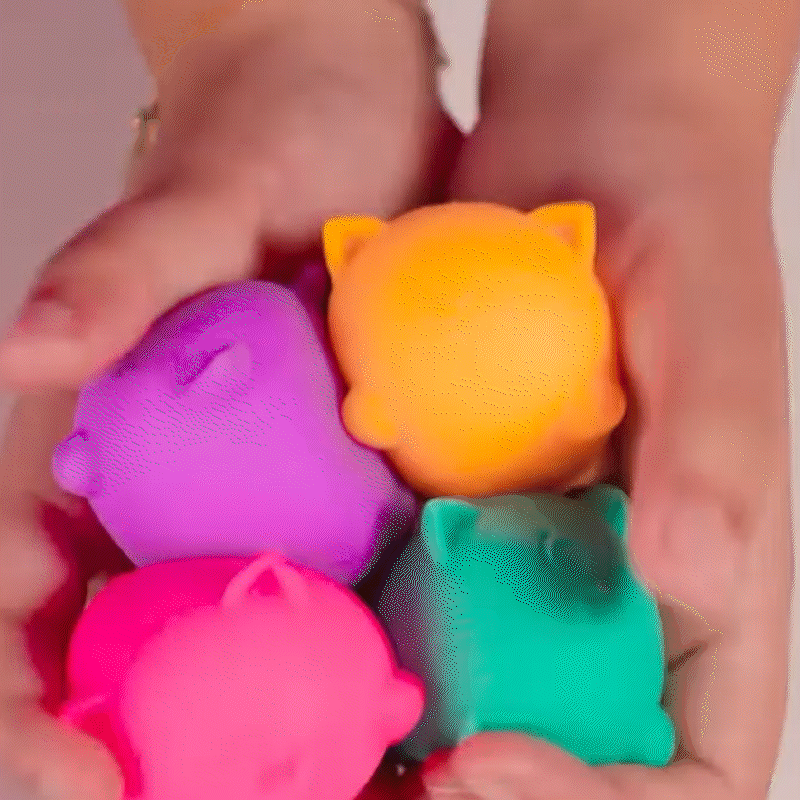 대부분의 스트레스볼(말랑이, 젤리공 등)은 PVC 소재로 만들어져 저렴하고 튼튼하지만, 미세플라스틱 문제로 인체와 환경에 유해할 수 있는 우려가 있습니다.