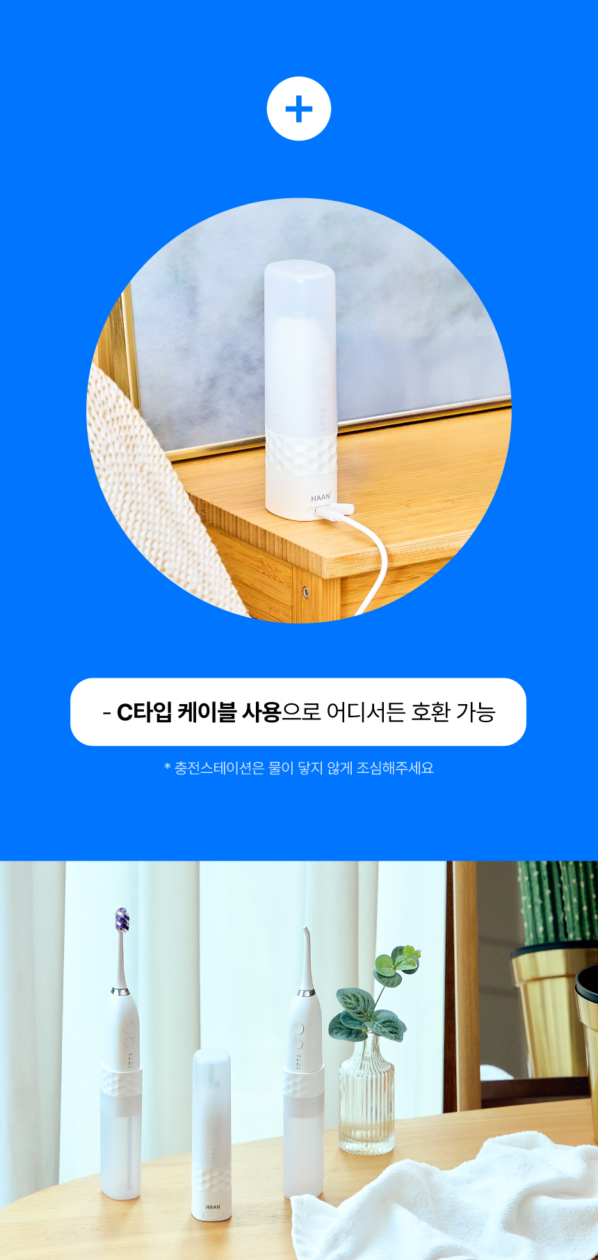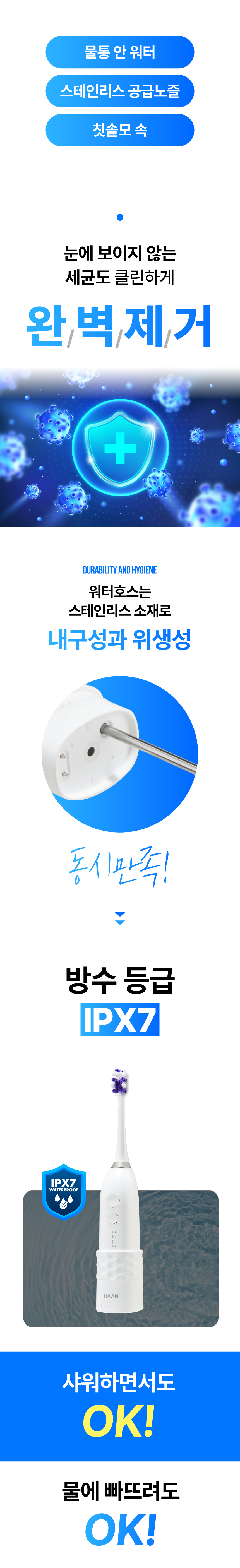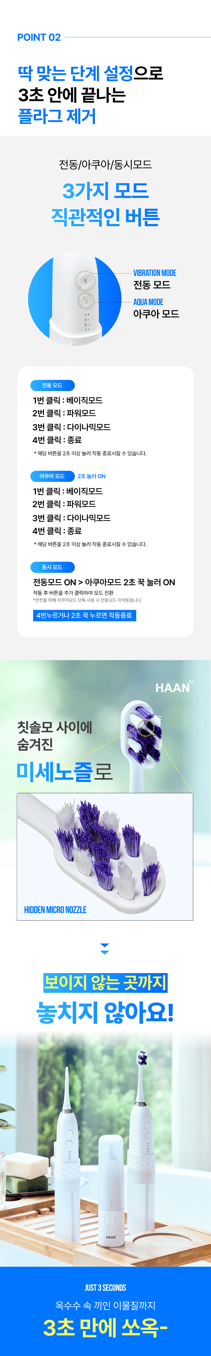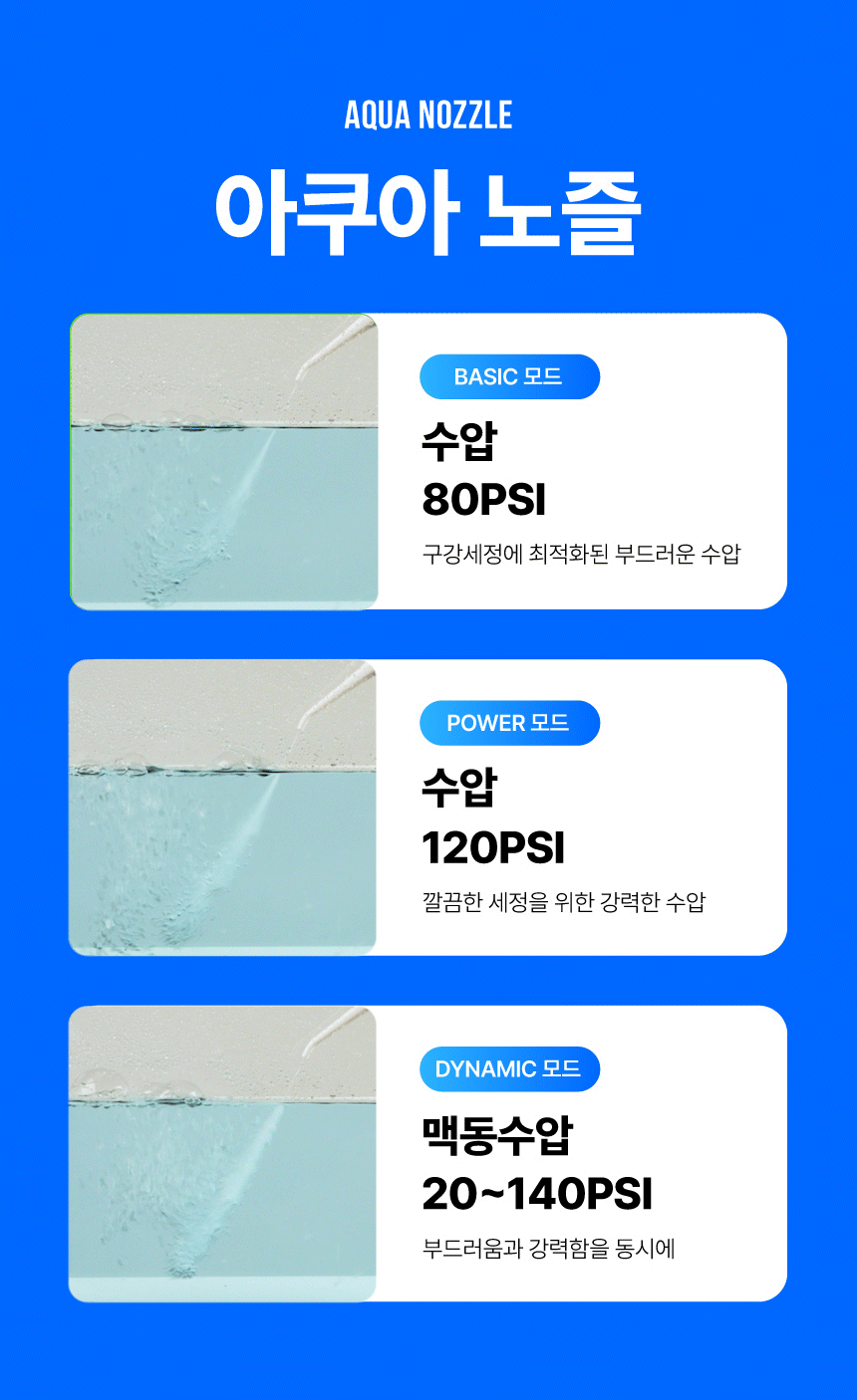 사용하고자하는 노즐(브러쉬 or 아쿠아)을 본체에 꽉 끼워주세요