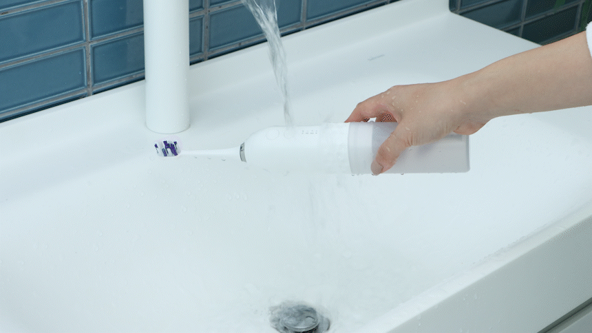 한경희 2in1 이지젯 전동칫솔의 커버와 충전베이스를 제거해주세요