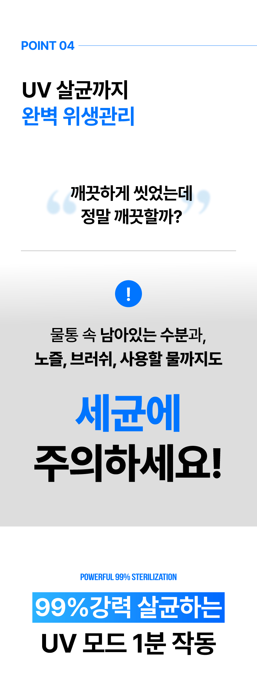 사용하신 후 노즐과 워터탱크를 분리하여 물기없이 충분히 건조시킨 후 보관해주세요