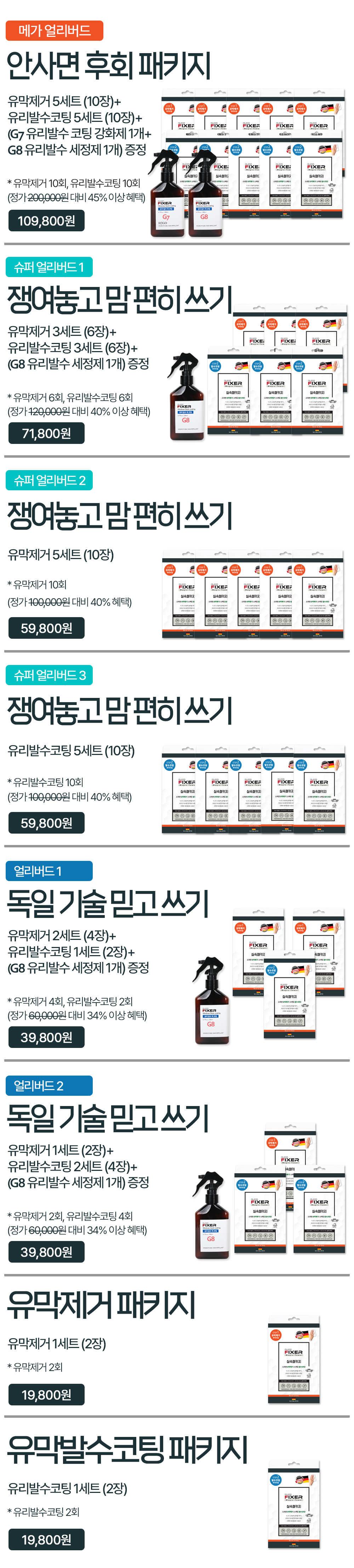 차량을 아끼는 분들께서는 흔히들 유막제거는 6개월에 1회, 유리발수코팅은 3개월에 1회 정도를 가장 많이 시공 하십니다. 빗길에서 선명한 시야확보는 안전과 직결된 부분이기에 항상 투명한 앞유리 관리가 중요합니다.