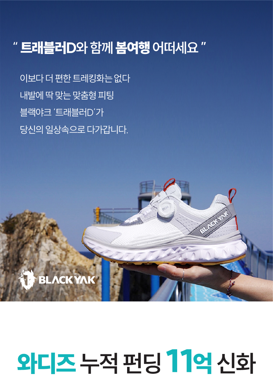 아웃도어 시장에서 독보적인 기술력과 인지도를 가지고 있는 블랙야크가 일상에서도 신을 수 있는 최적의 멀티슈즈 트래블러 시리즈를 만들었고