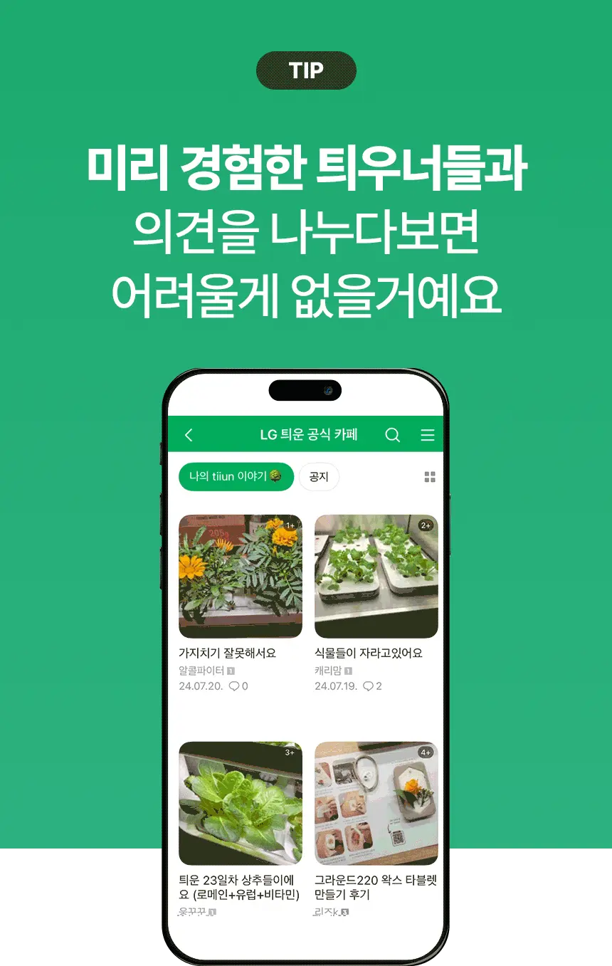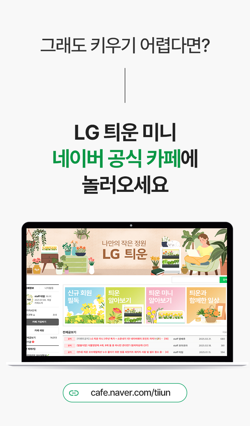 안녕하세요. 모든 서포터가 초보 식집사 탈출을 희망하는 메이커 LG 틔운 총판, 신영플러스 매니저 제로입니다.