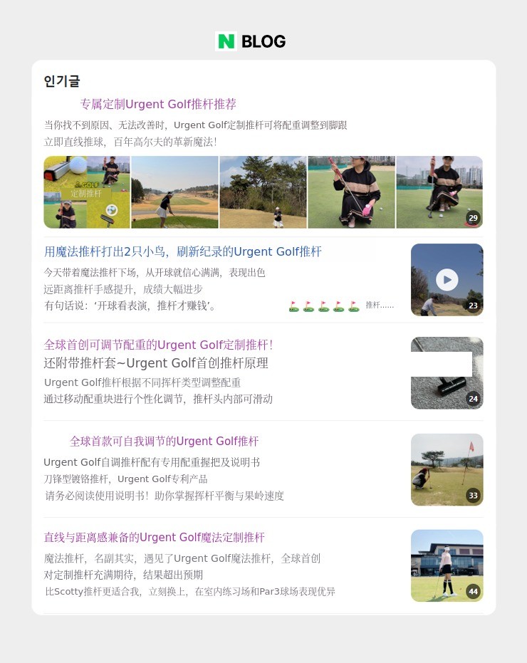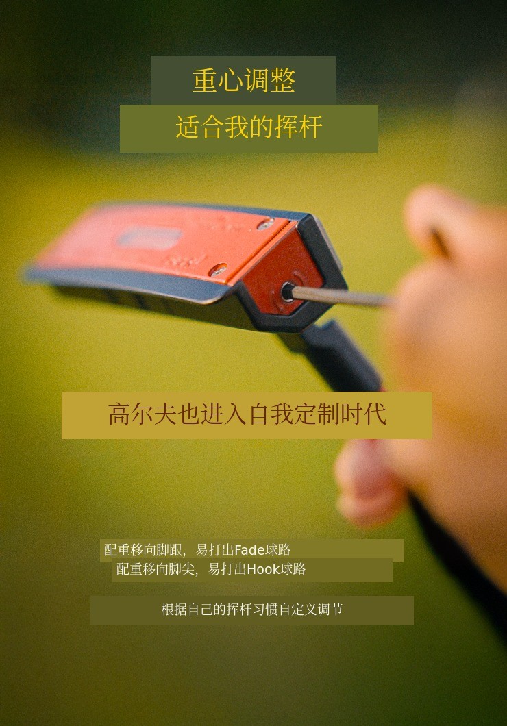 你知道吗?推杆们会稍微加一点配重 来调整重心。这样当然也不错,但Urgent Golf凭借专利技术诞生了“可调式推杆” 了。