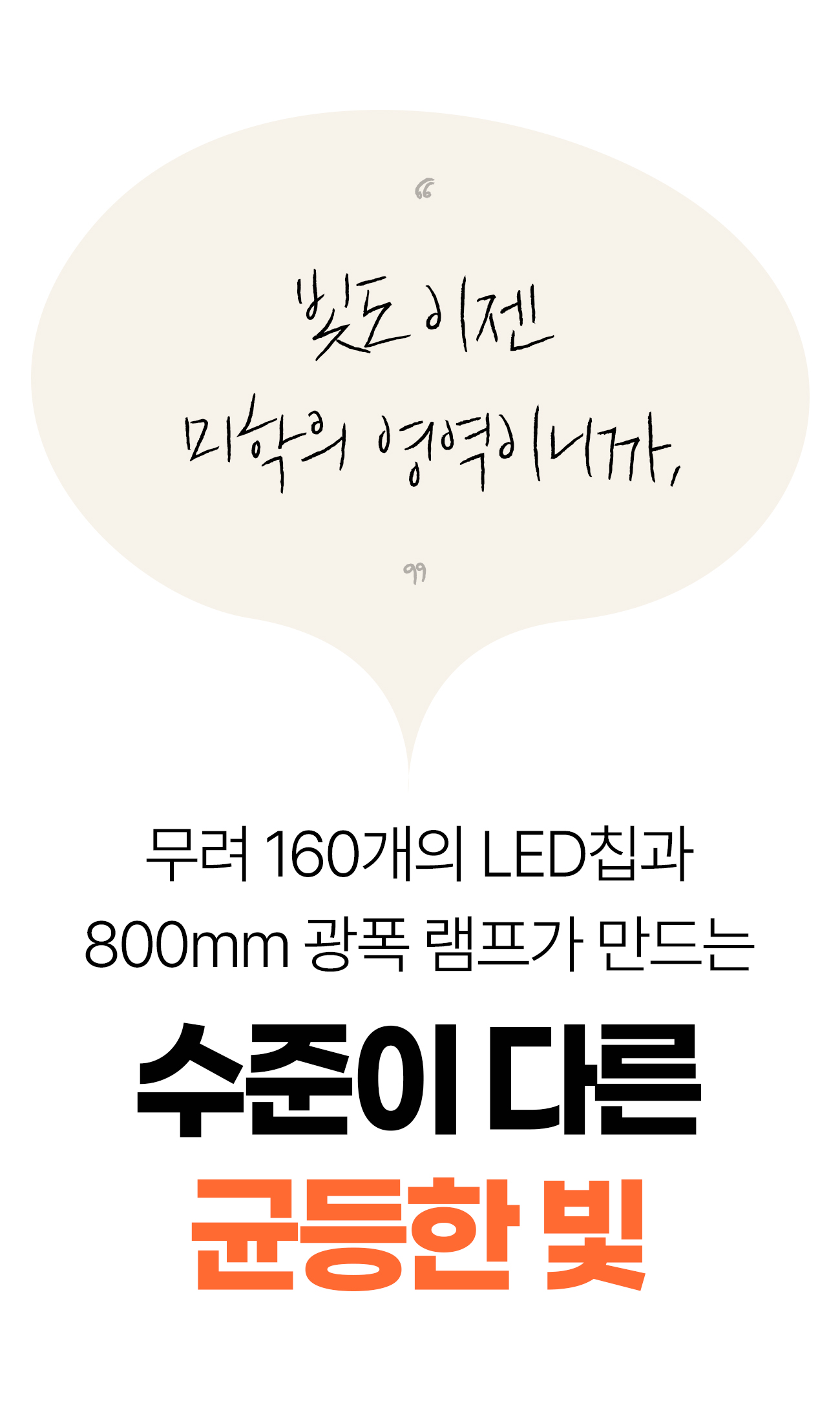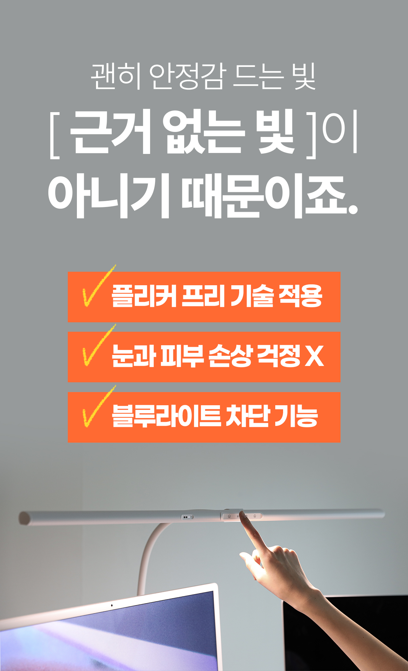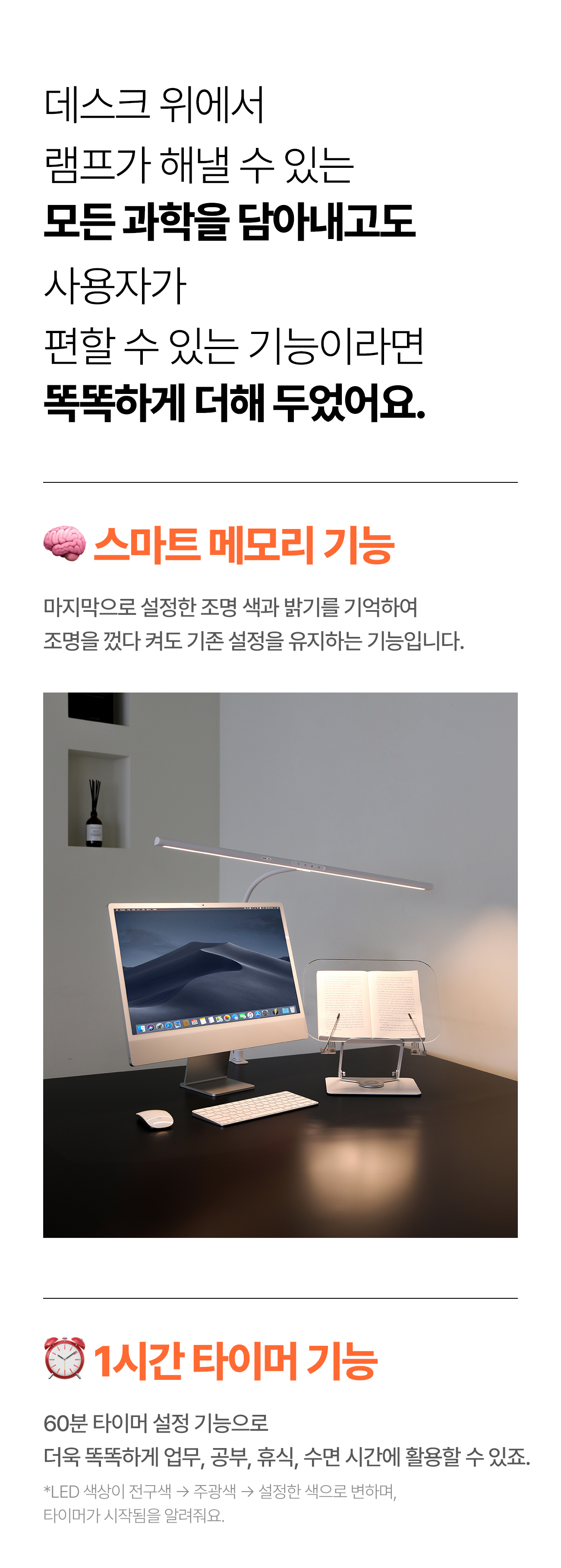 1. 💡 搭载160颗LED芯片智能台灯 - 160颗LED与800mm宽幅灯均匀照明 2. 🤖 动作感应自动开关 - 通过感应用户动作自动开关灯 3. 🎁 7万韩元合理价格 - 高规格照明产品实惠价格提供