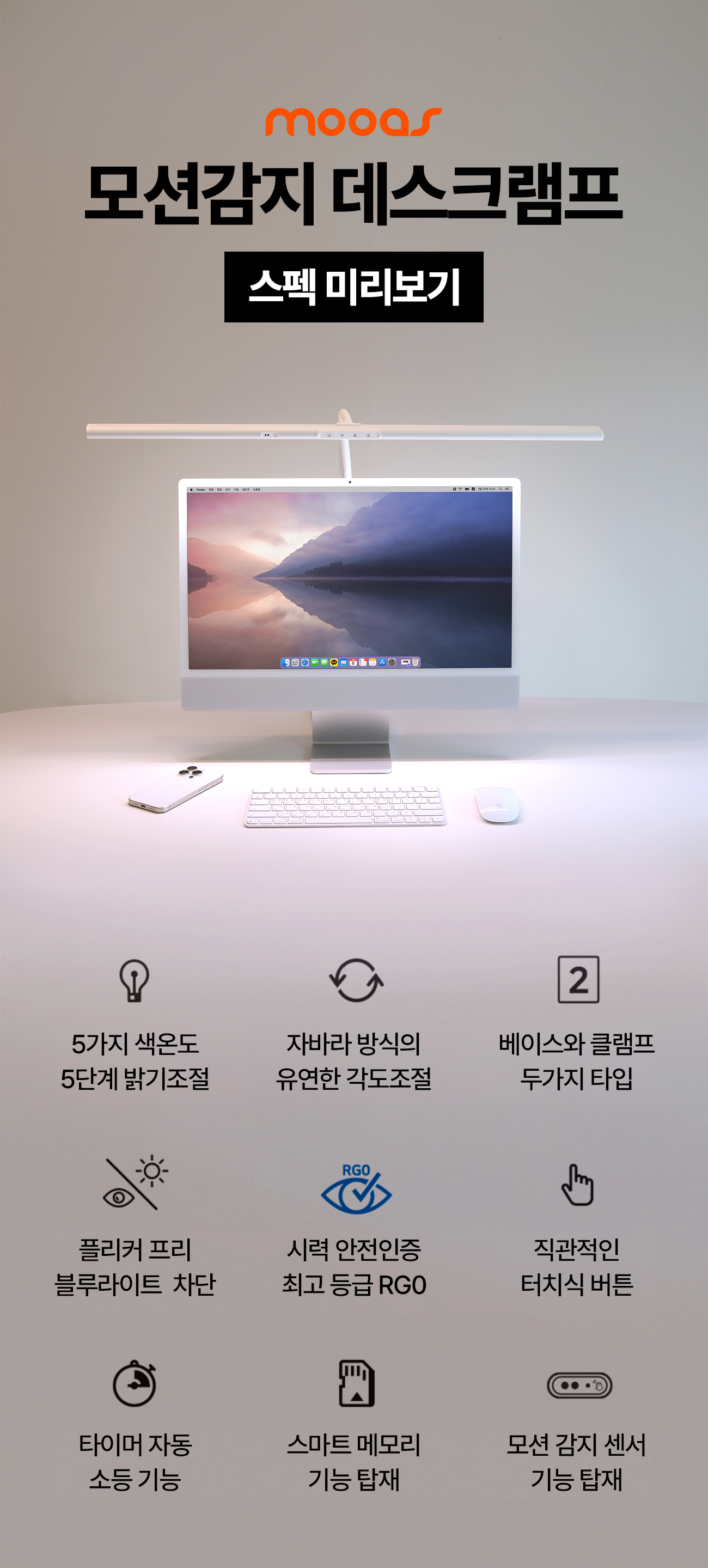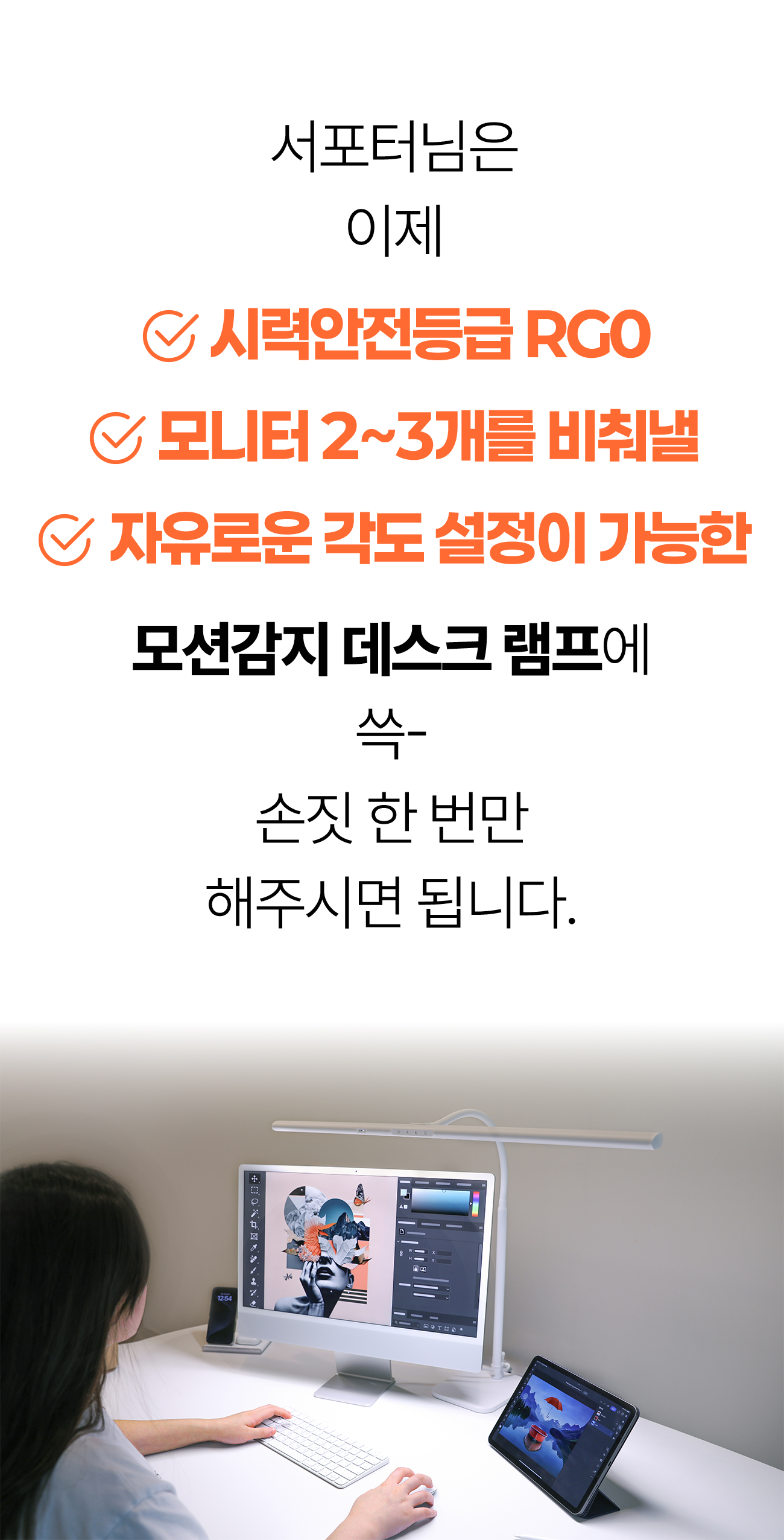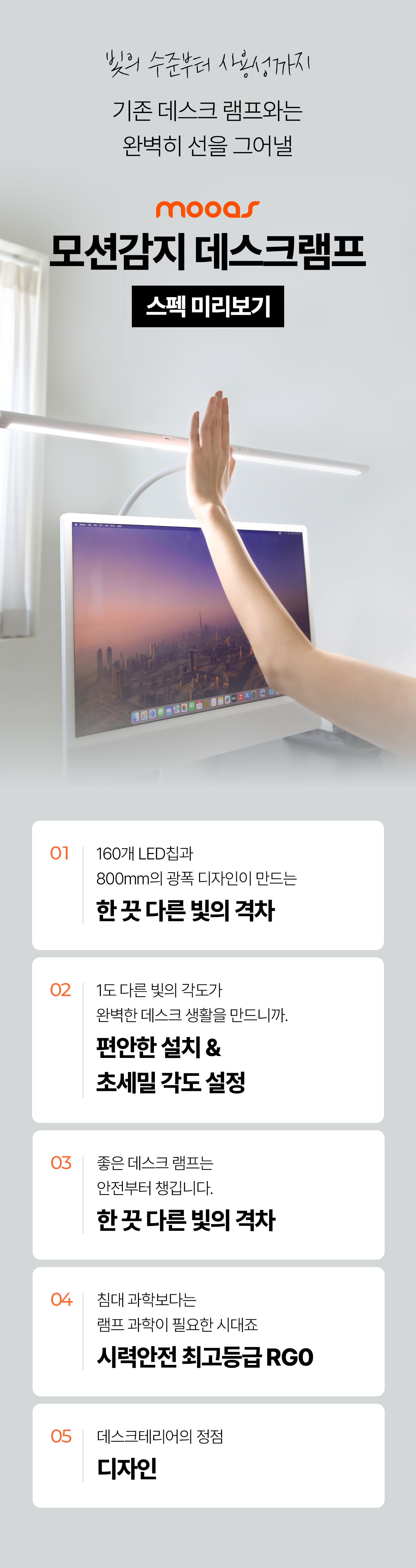 1. 💡 搭载160颗LED芯片智能台灯 - 160颗LED与800mm宽幅灯均匀照明 2. 🤖 动作感应自动开关 - 通过感应用户动作自动开关灯 3. 🎁 7万韩元合理价格 - 高规格照明产品实惠价格提供