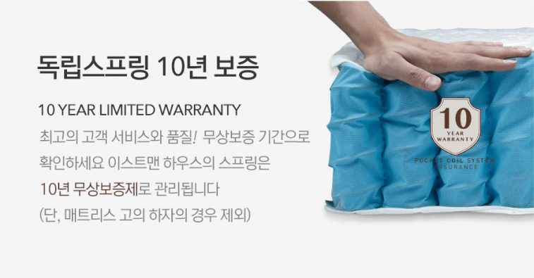 무상 보증 기간 : 포켓스프링 10년 무상보증