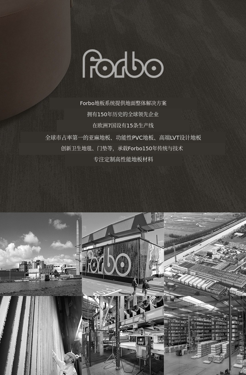 在欧洲7个国家拥有15条生产线,生产全球市场占有率第一的亚麻地板、功能性PVC地材、高级设计地材LVT、独特且卫生的地毯、门厅专用地垫等,凭借Forbo 150年的传统与技术,制造定制高性能地材。