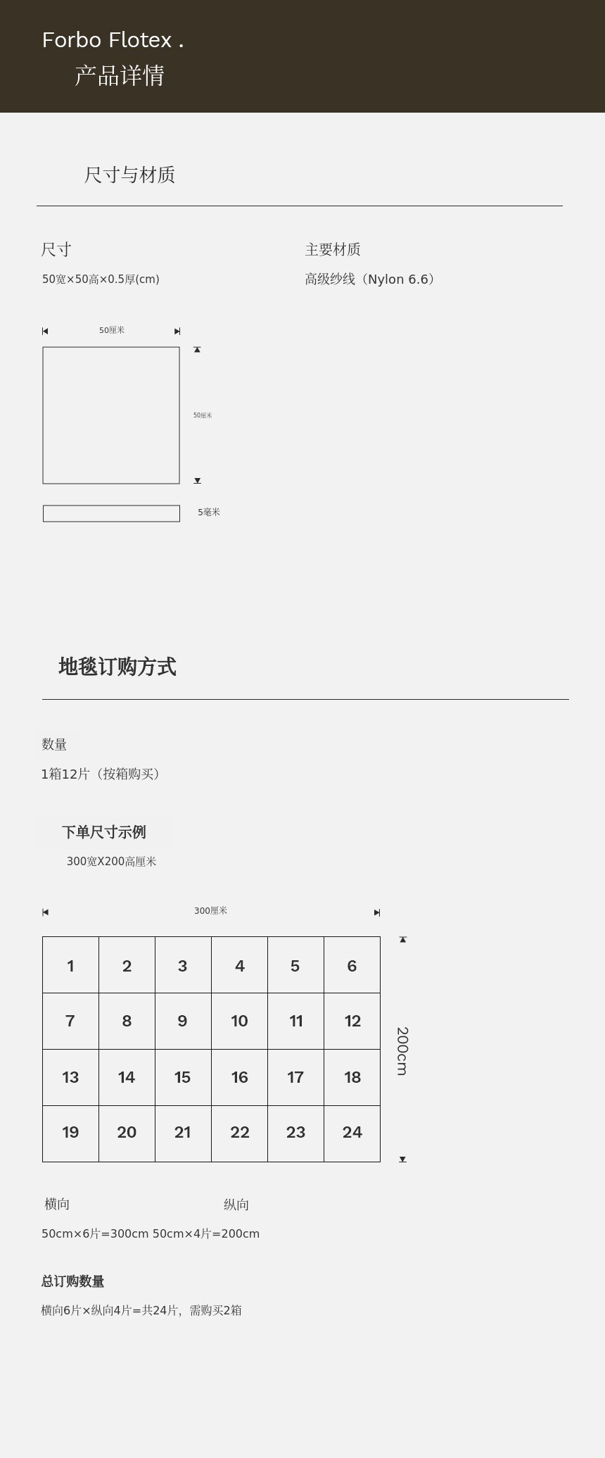 Flotex是100%防水背衬 结构不会渗透到地面,无需担心发霉或潮湿 可以安心使用。