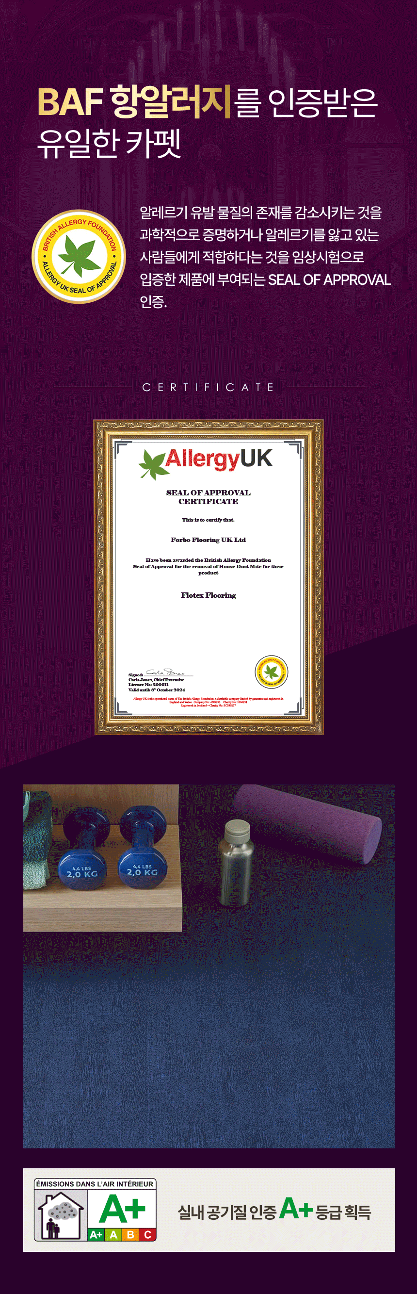 FLOTEX是地毯中唯一获得英国过敏协会抗过敏认证的健康地面材料。