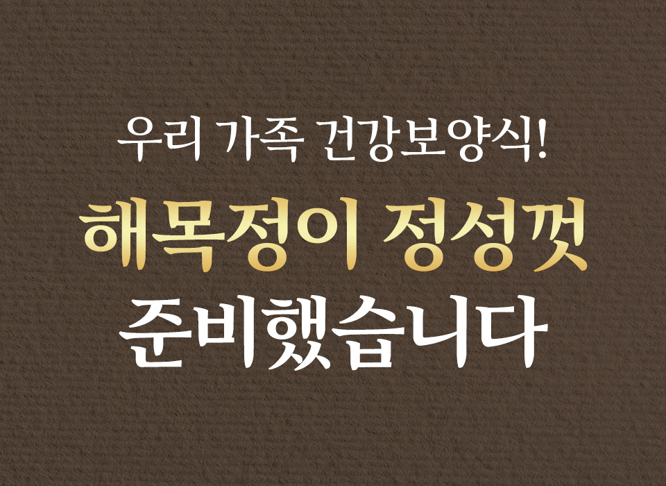 저희 해목정은 항상 “우리 가족의 건강 보양식” 이라는 슬로건 아래, 신선하고 질좋은 식재료만을 사용하고 지속가능한 경영 철학을 바탕으로 한국을 넘어 전세계로 도약하는 브랜드가 되겠습니다.