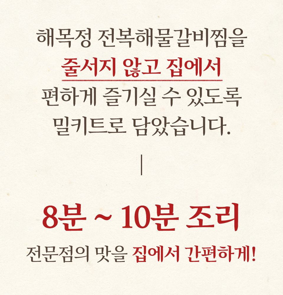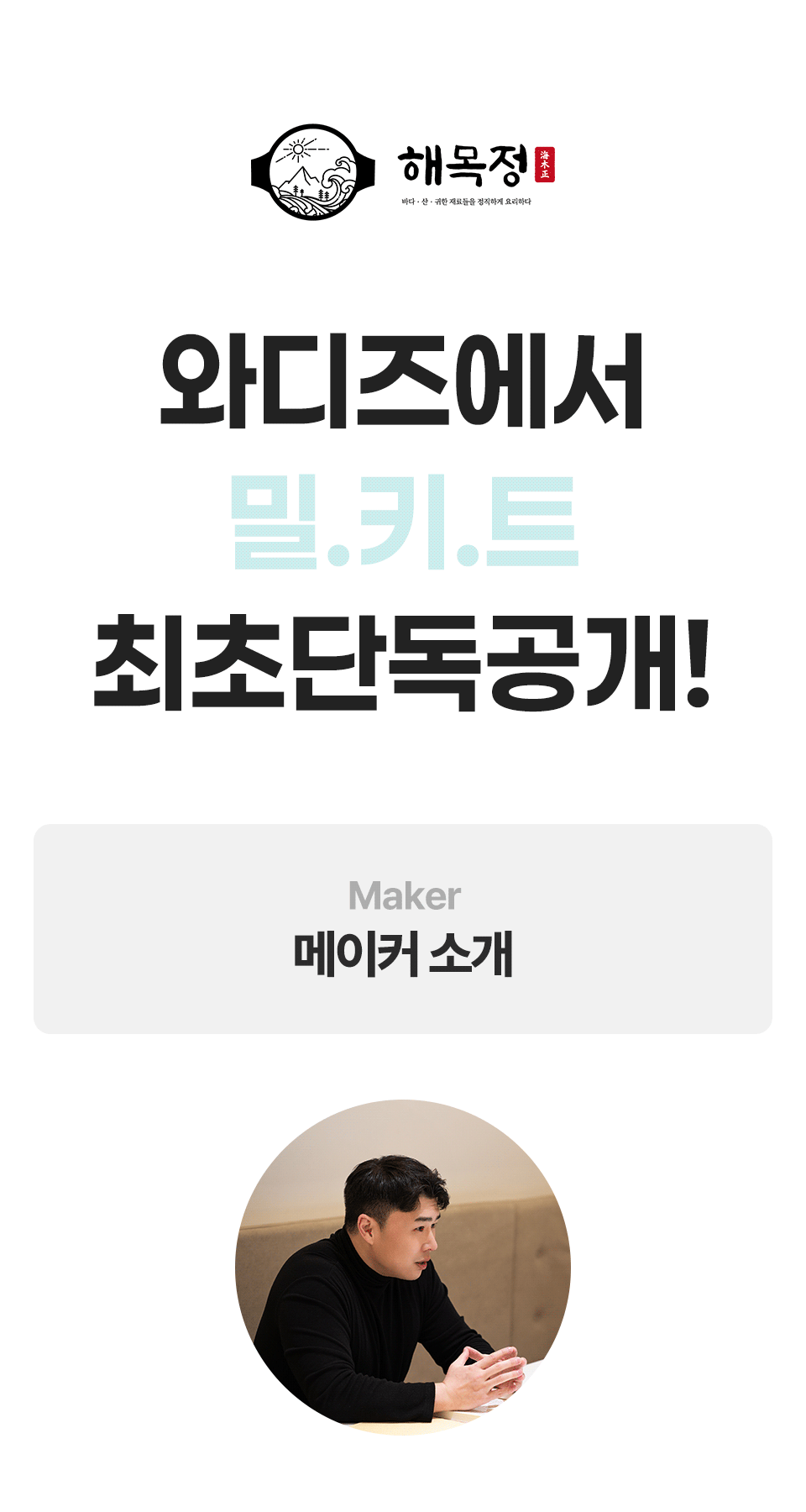 와디즈는 제품을 사기전에 가치를 먼저 이해하고 공감해주는 소비자가 모이는 플랫폼이기 때문에 이번 펀딩을 통해 브랜드의 방향성과 철학, 그리고 품질에 공감해주는 서포터님들과 함께 해목정의 전복해물갈비찜을 전국의 가족 식탁 위로 전하고 싶습니다.