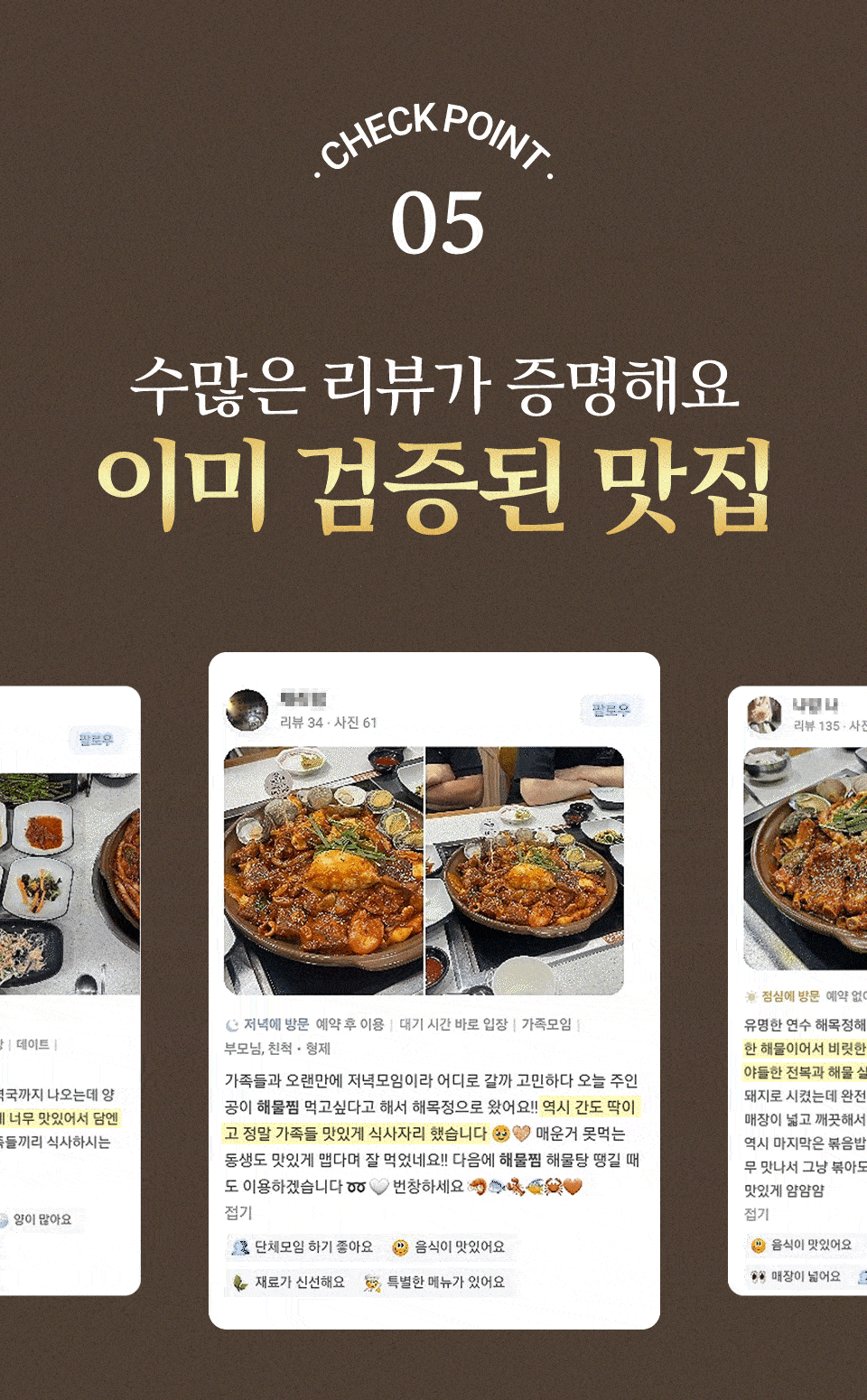 단순히 음식을 만드는 것이 아니라, 가족의 건강을 위한 정직한 식탁을 만들고자 노력하는 뉴하비츠 브랜드인 "해목정"은 인천 연수구에서 지역 주민들에게 오랫동안 사랑받아온 전복해물갈비찜 전문 맛집입니다. 한입만으로도 느껴지는 깊은 맛과 그동안 지켜 온 정직한 조리 방식은 수많은 단골들의 마음을 사로 잡아 왔습 니다. 하지만 ‘맛집’이라는 한정된 공간을 넘어, “더 많은 사람들의 식탁 위에 해목정의 정성과 철학을 전하고 싶다”는 마음이 점점 커졌습니다. 우리가 가진 진정성 있는 요리 철학과 ‘가족의 건강을 생각하는 한 끼’라는 브랜드 메시지를 단순한 유통이 아닌 공감 기반의 스토리 전달로 시작하고 싶었습니다.