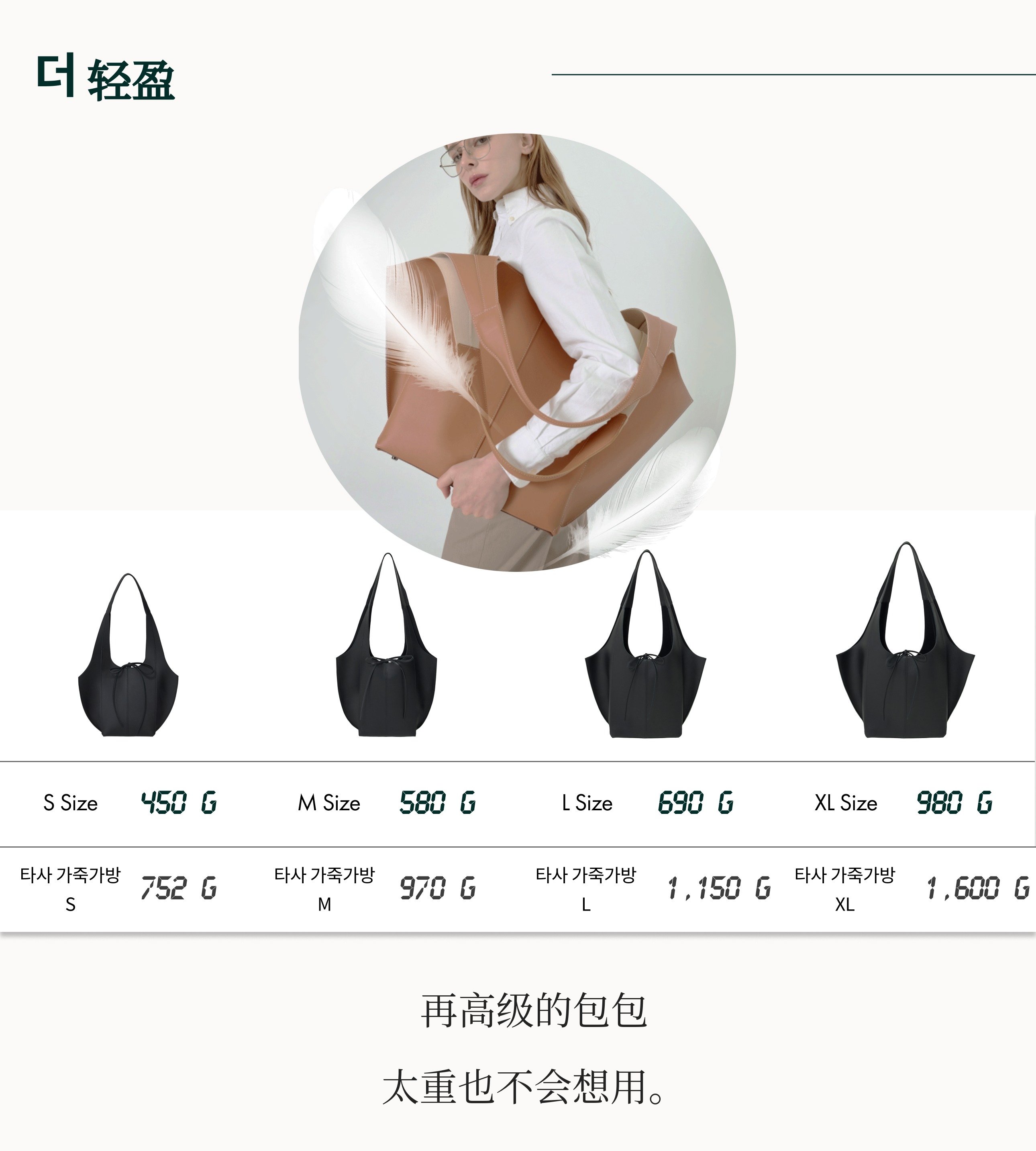 重量大约只有普通全皮托特包的一半,