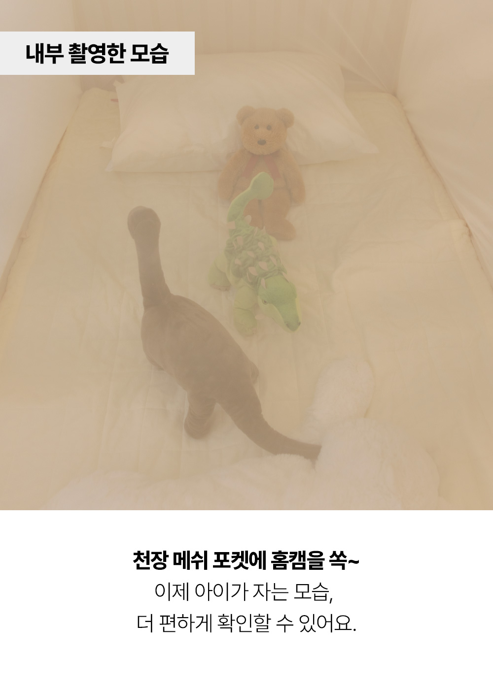 베드가드 천장에는 모빌을 달 수 있는 끈도 있습니다.