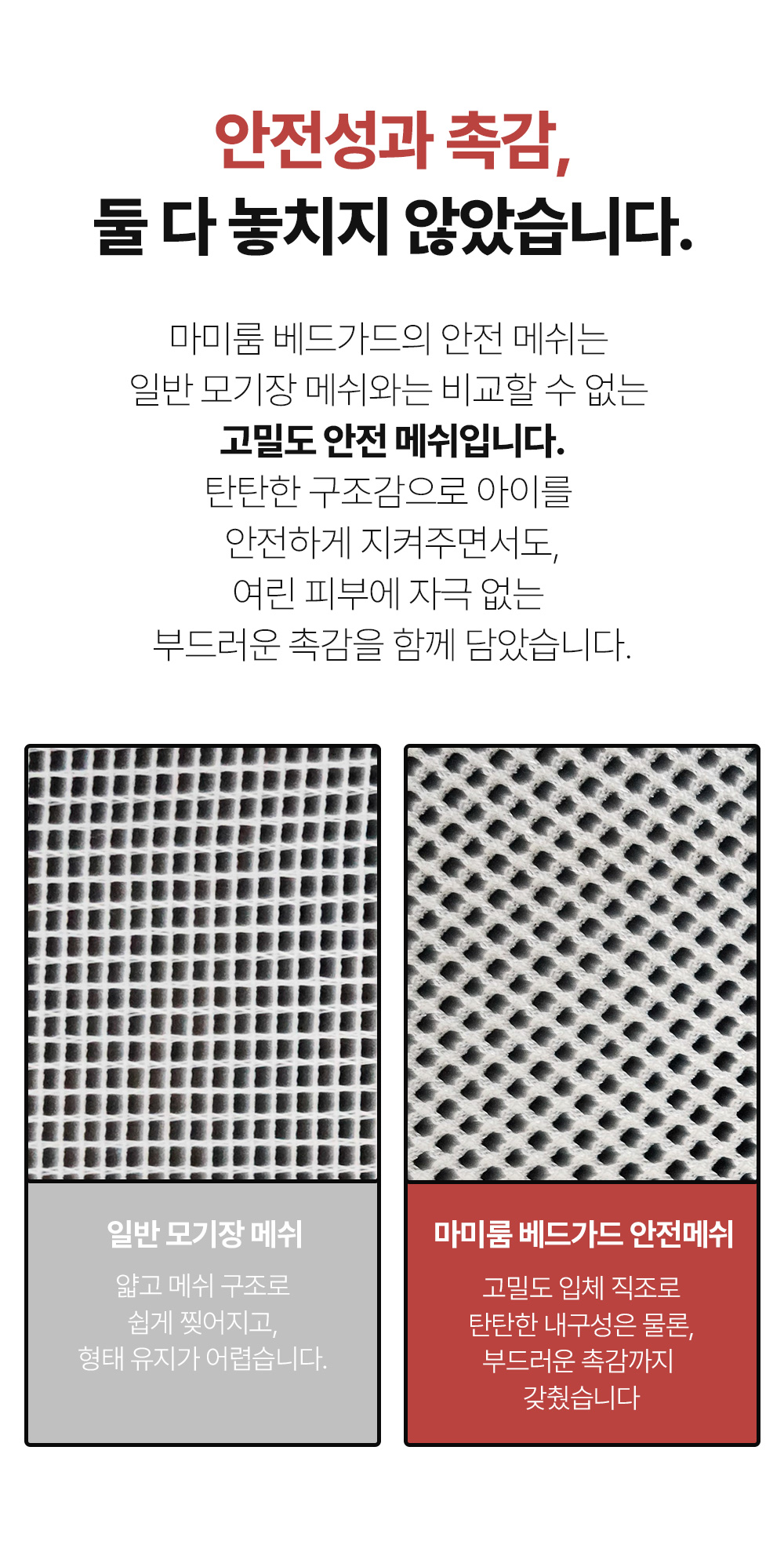마미룸 베드가드는 매트리스를 완전히 감싸는 구조로
