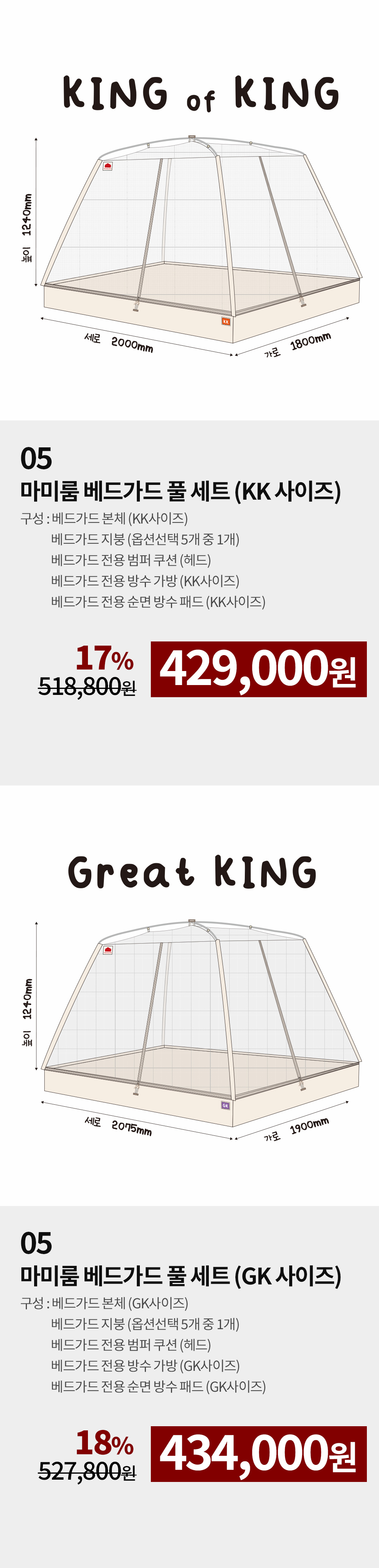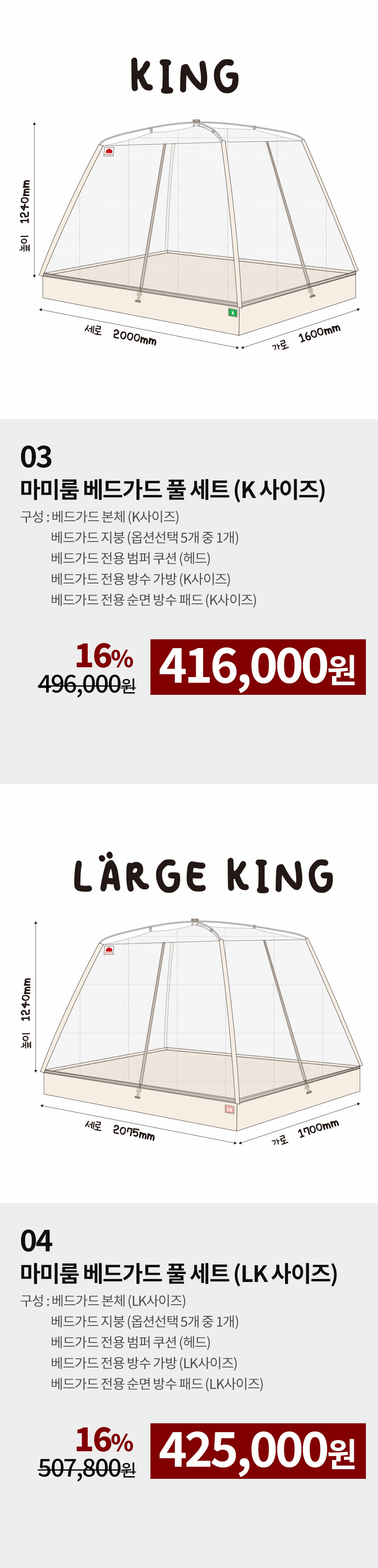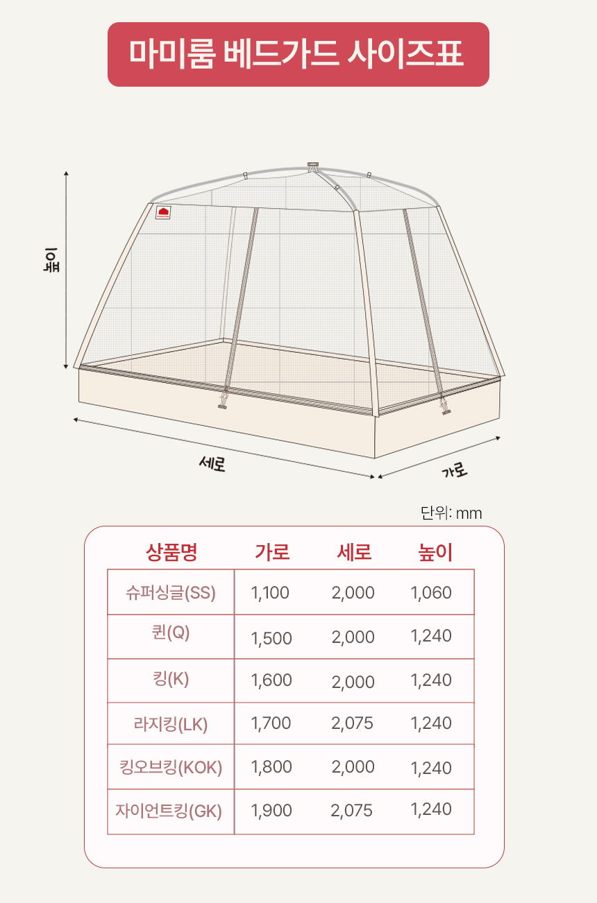 베드가드는 자꾸 오르고 싶어 하는 아이들이 오르지 못하도록, 단순히 가드의 높이를 높힌 것이 아닌 텐트의 돔 형태로 어떤 상황에서도 침대 밖으로 절대 넘을 수 없도록 만들었습니다.