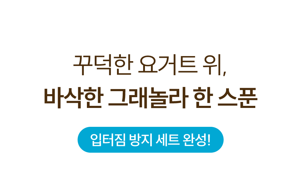 - 그래놀라 : 직사광선을 피해 서늘한 곳에 실온 보관하시고, 공기와 접촉되면 산패된 냄새가 나거나 바삭함을 잃을 수 있으니 꼭 밀봉해 주세요.