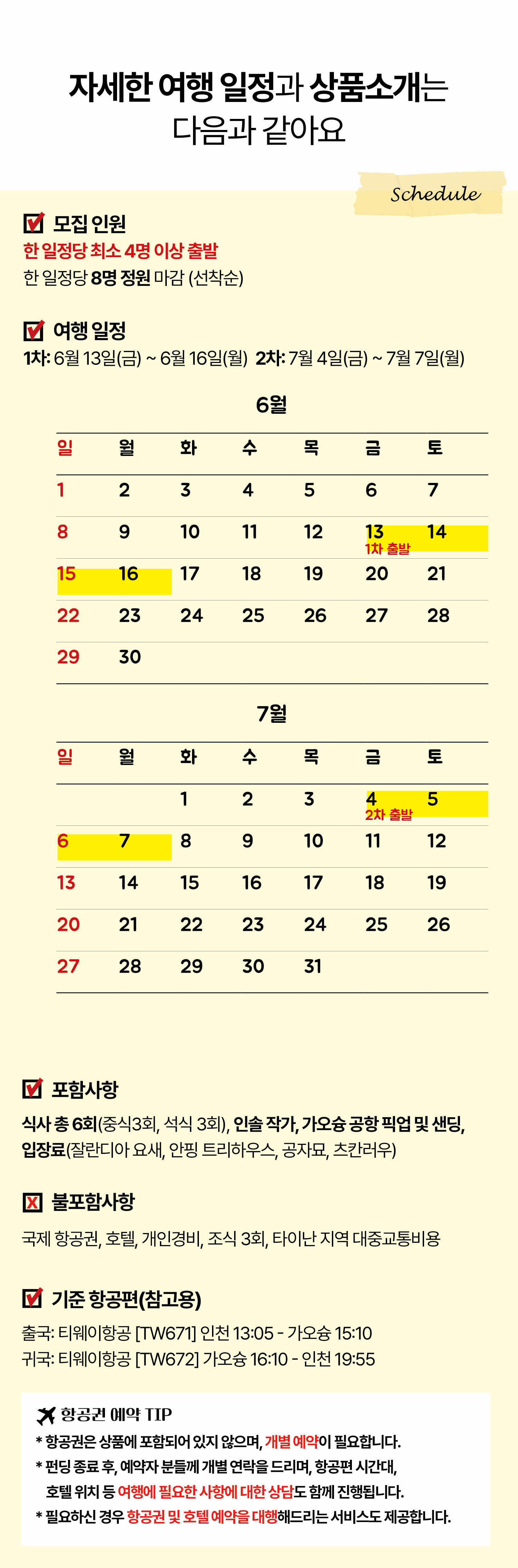 또한, 펀딩 종료 후 취소하는 서포터가 발생해 최소 인원에 미달할 경우 여행이 취소되며, 이 경우 개별적으로 연락드릴 예정입니다.