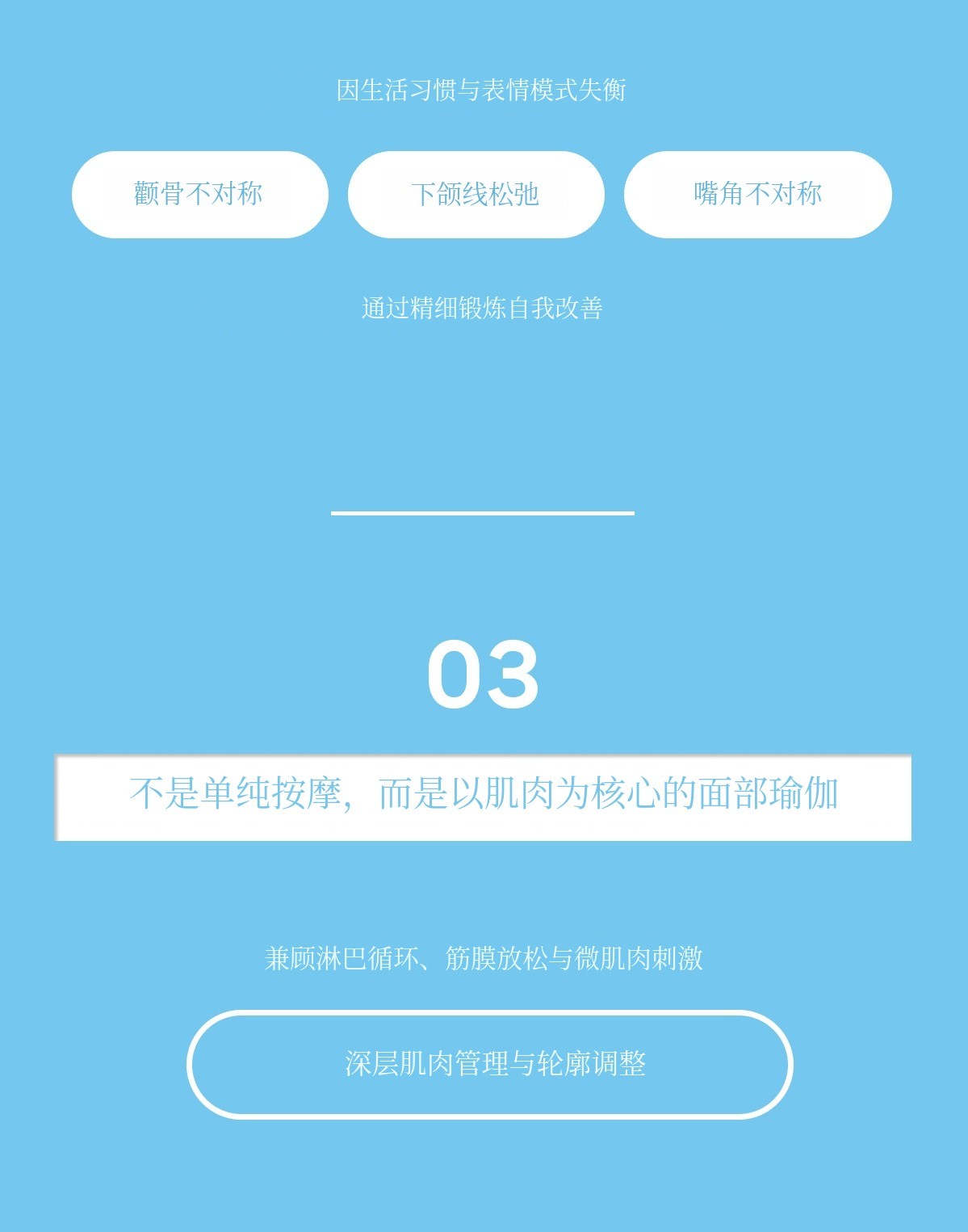 为了让敏感肌肤也能安全使用,采用无强烈刺激、整理肌肉和淋巴流动的方式构成。
