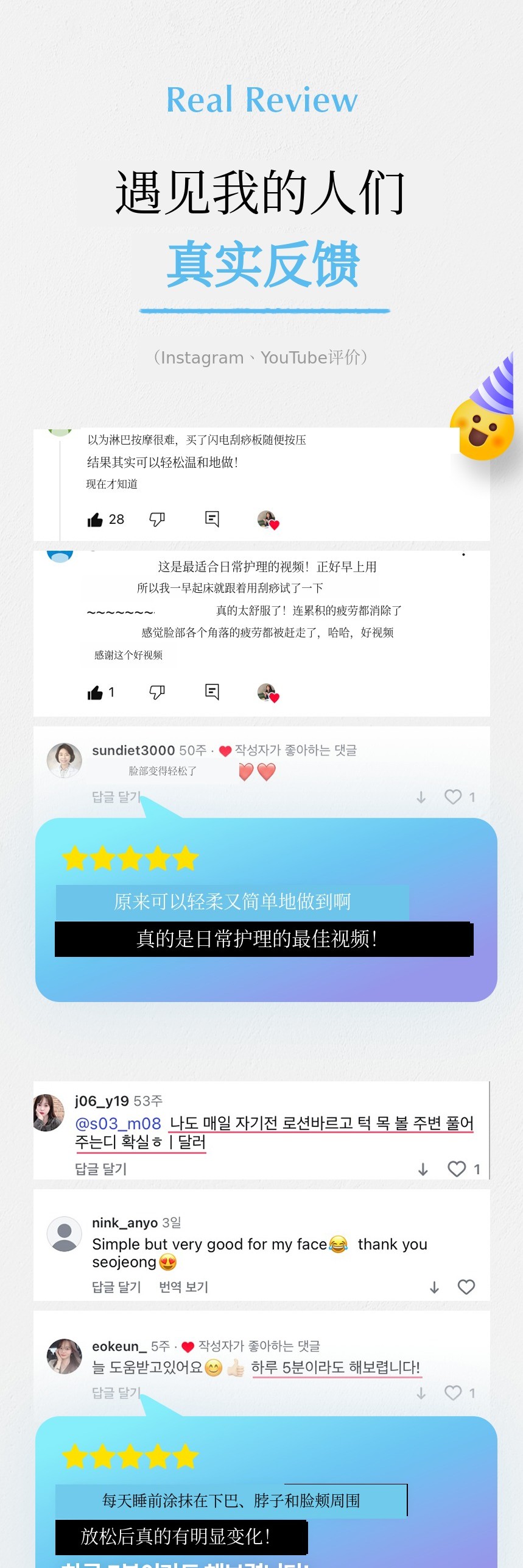 部分部位的护理如果配合刮痧等辅助工具使用,效果会加倍,但视频中的基础流程都设计成只用手也能充分实践。