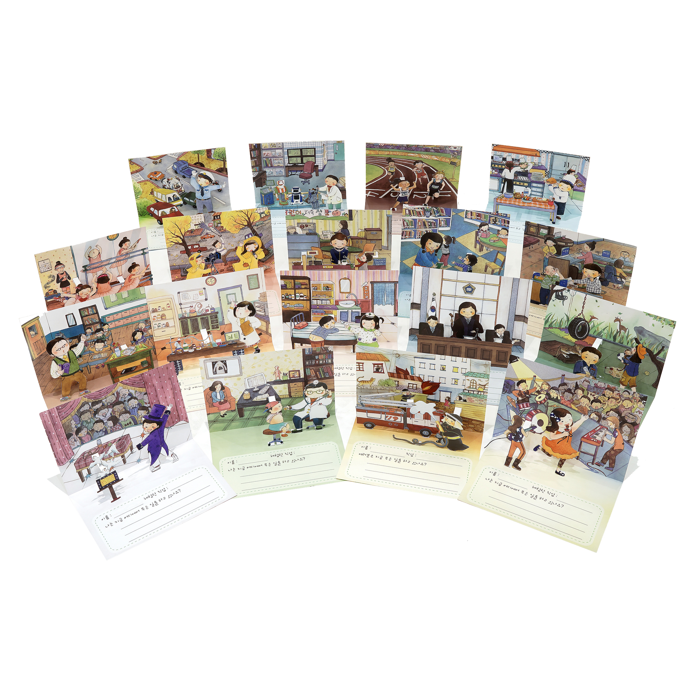 운동선수 3 / 간호사 4 / 과학자 5 / 경찰관 6 / 가수 7 / 은행원 8 / 소방관 9 / 요리사 10 / 의사 11 / 기자 12 /발레리나 13 / 사서 14 / 동물사육사 15 / 선생님 16 / 로봇공학자 17 / 판사 18 / 마술사 19 / 공무원 20 /스티커 21~38