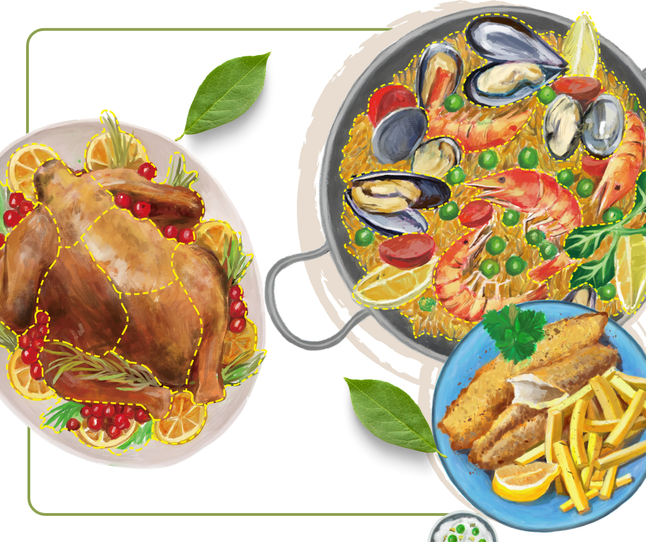 - 전문화가의 정교한 음식 일러스트로 만든 재료 형태를 살린 퍼즐 스티커(효과: 자신감과 성취감 향상)