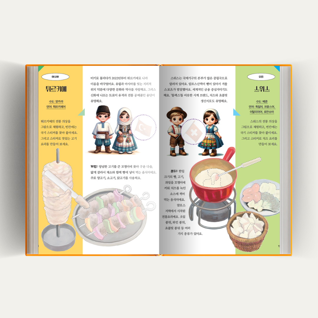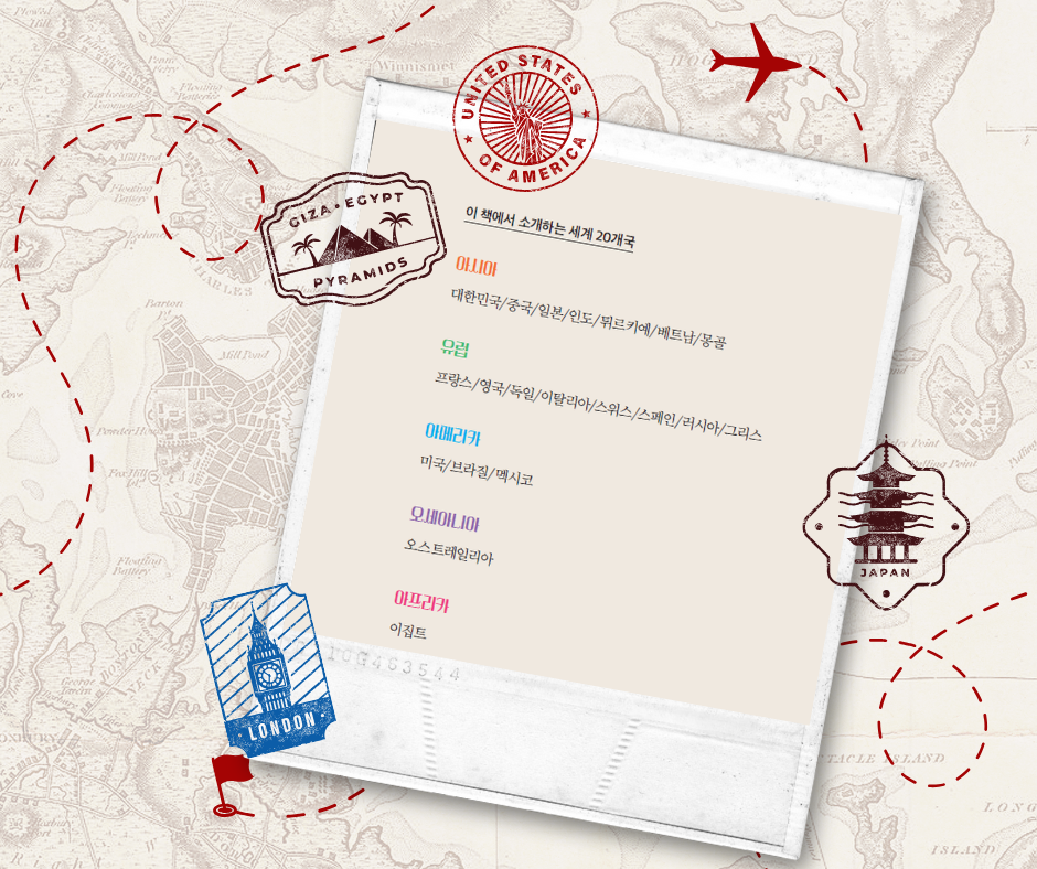 5대륙 20개국의 대표 음식, 전통 의상, 국기를 체험하며 세계를 여행하는 문화 체험북입니다.