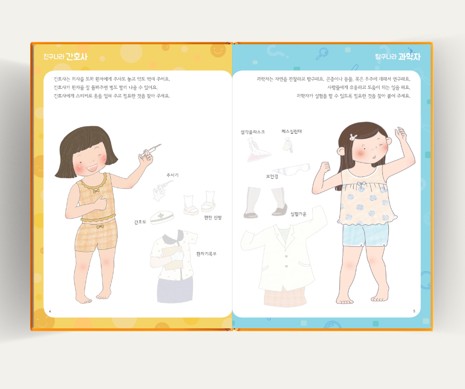 이 제품은 흥미적성별로 구성된 대표 직업 18종을 특수공정을 거쳐 구성한 리뉴얼 버전으로, 기존 오려 붙이는 방식보다 훨씬 간편하게 체험할 수 있어요.
