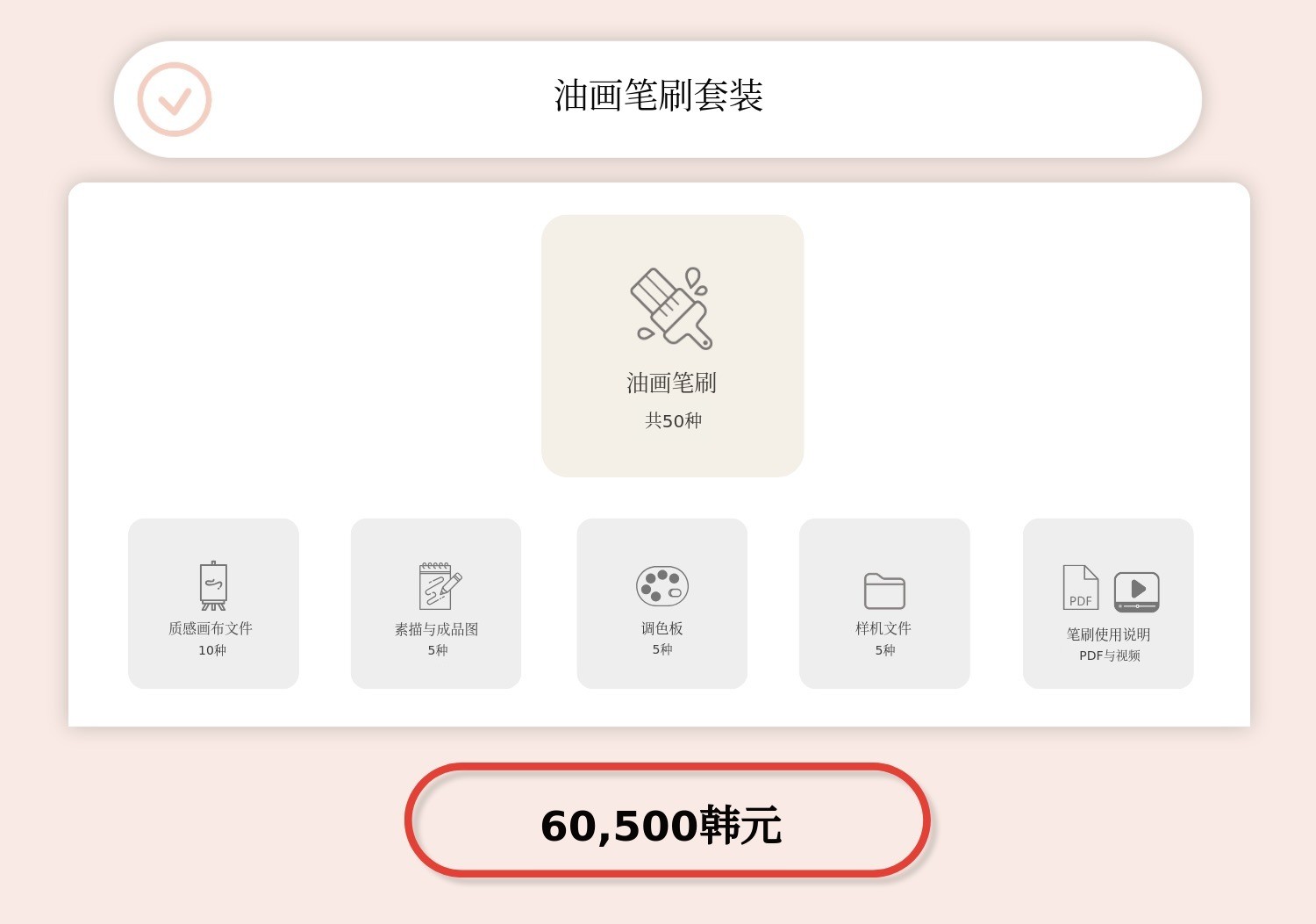 由7种以油画立体浓稠质感和颜料纹理为特色的印章型画笔组成。