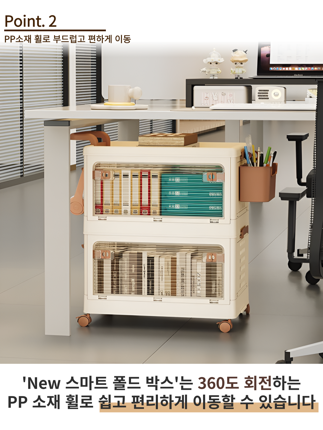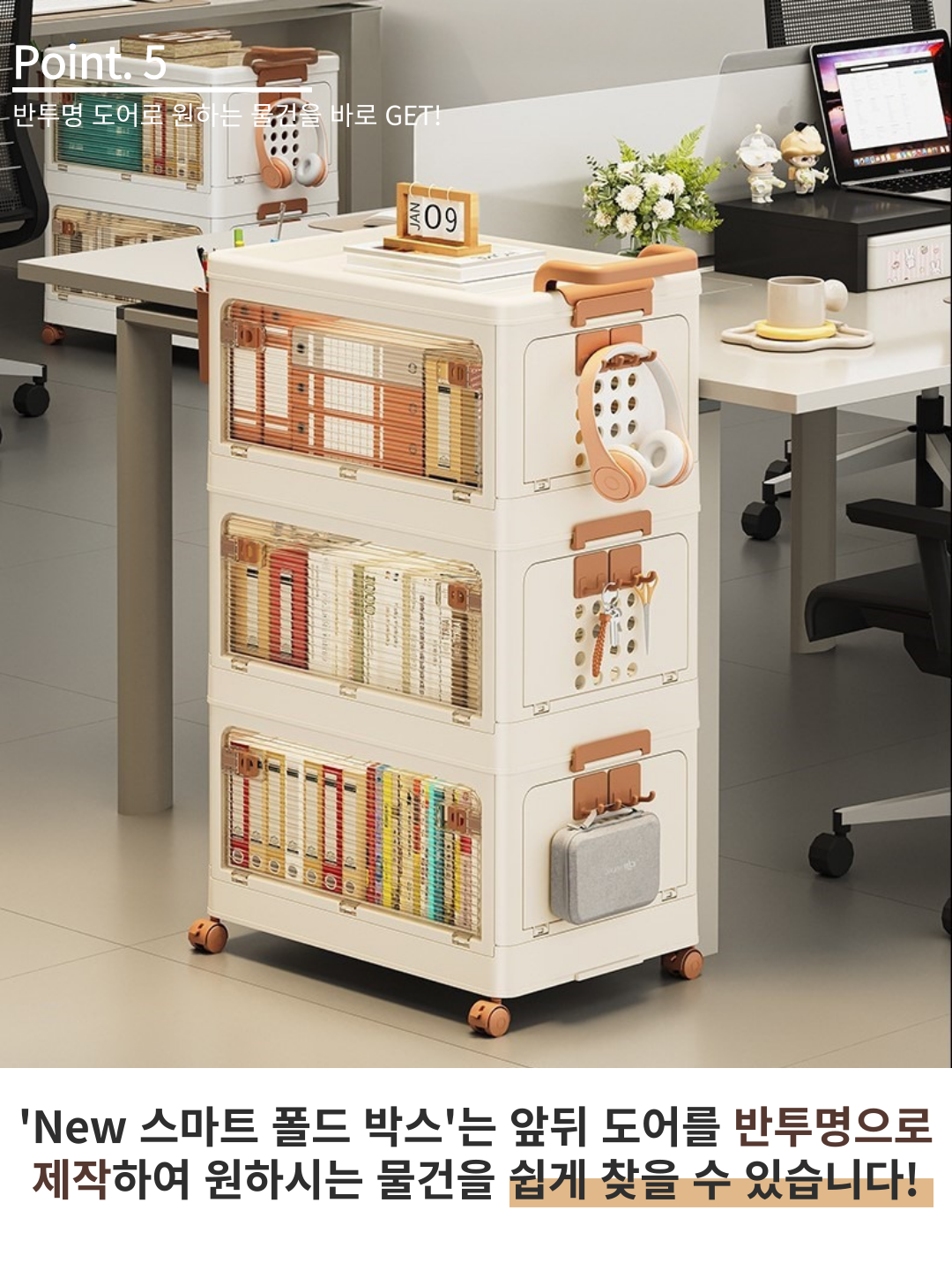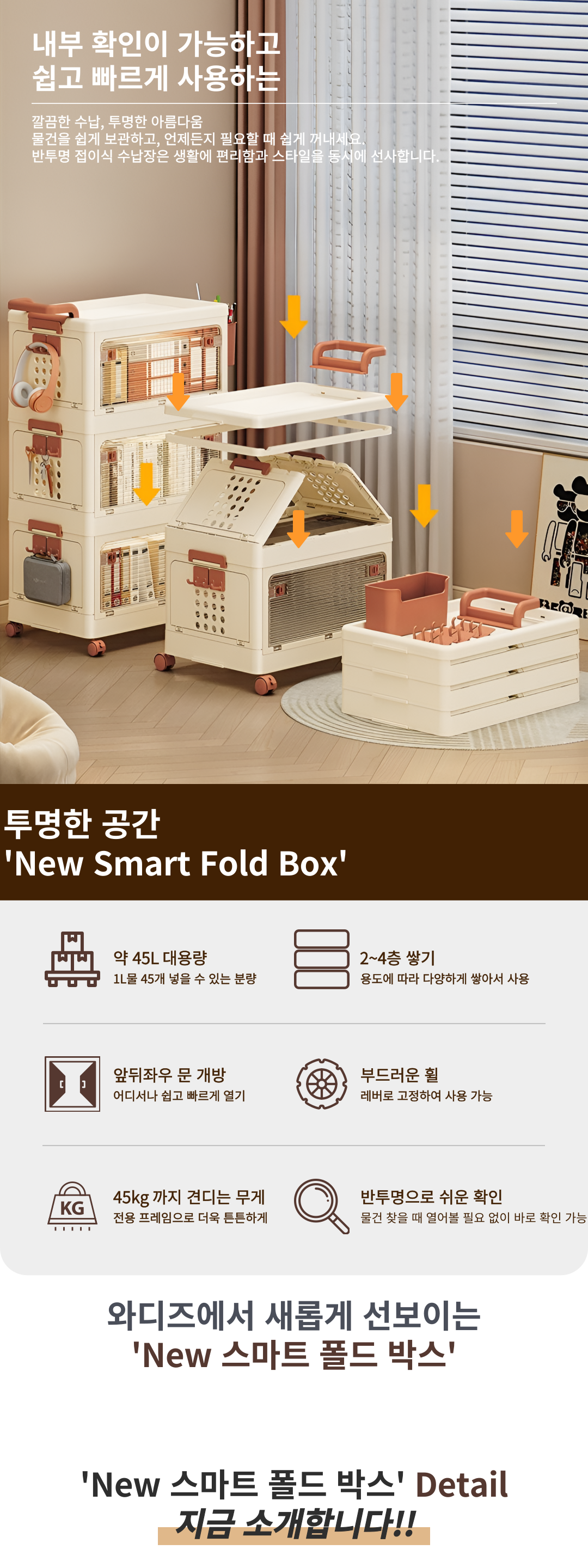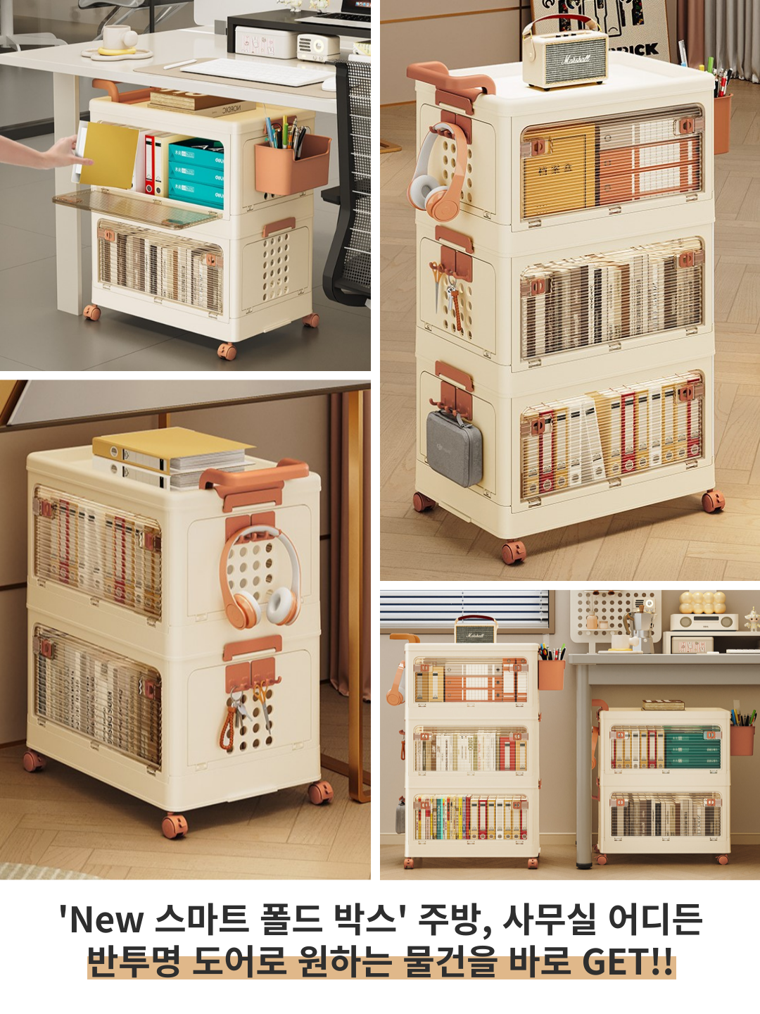 1. 📦 透明折叠收纳箱 - 透明前面设计,折叠结构节省空间 2. 🚚 便捷移动收纳 - 360度旋转轮和手柄,轻松移动 3. 🎁 Wadiz独家优惠 - 仅限Wadiz特别配置和限量供应