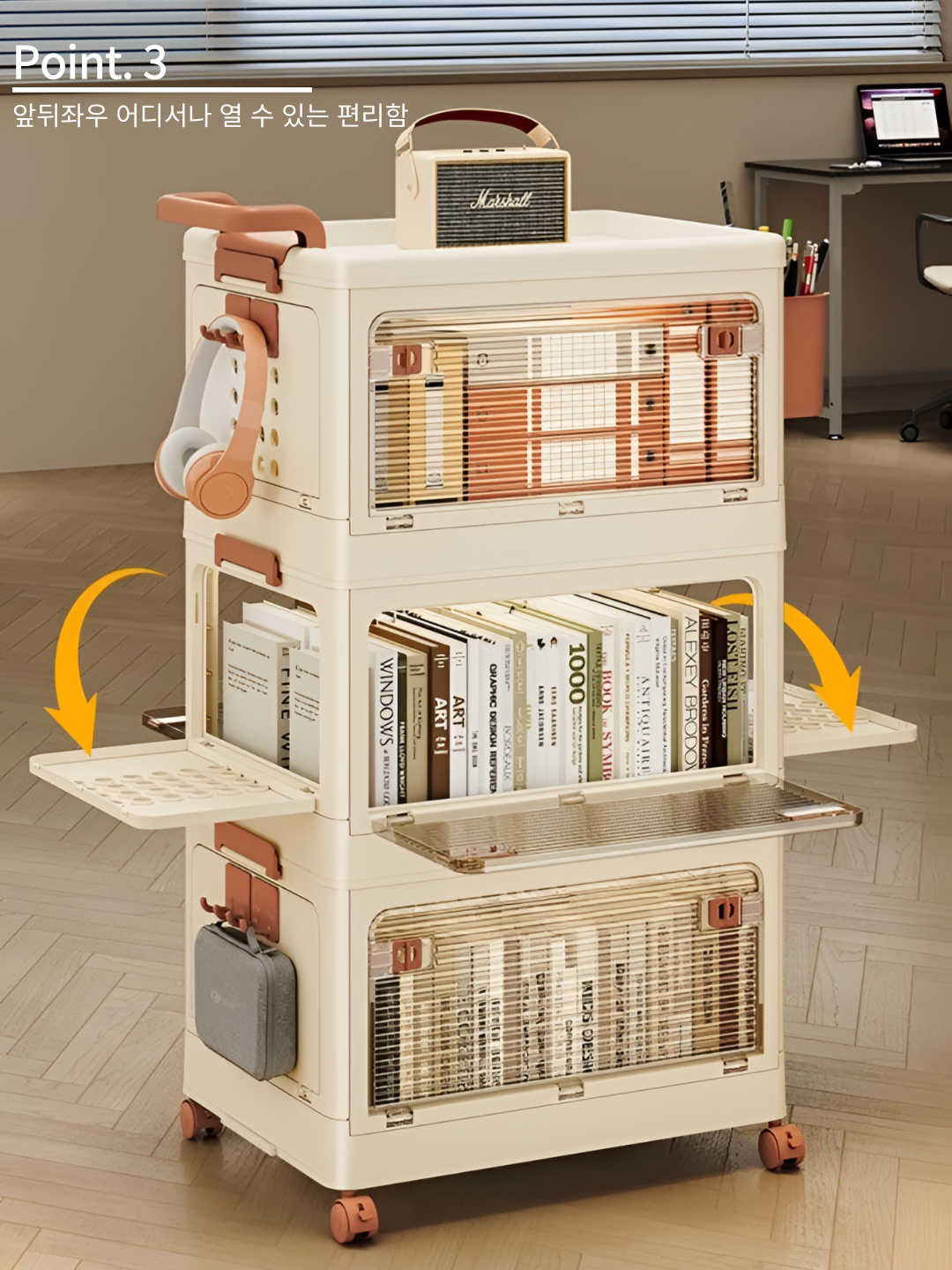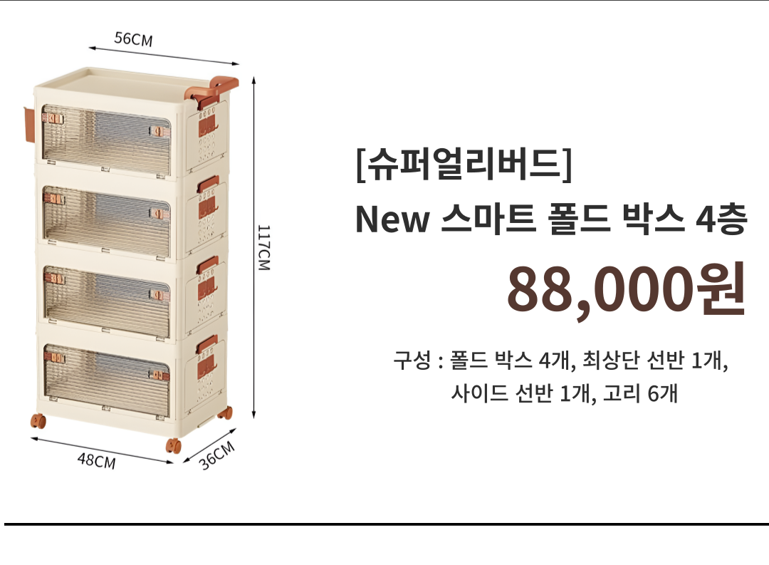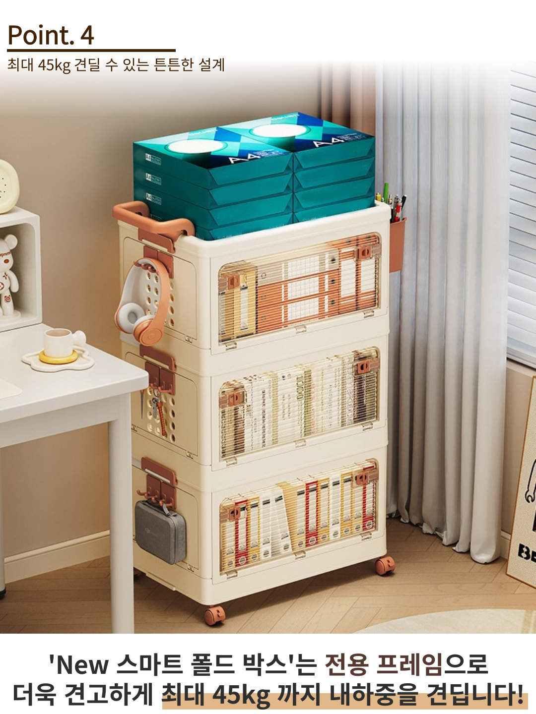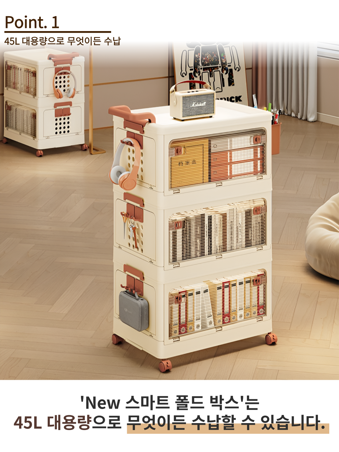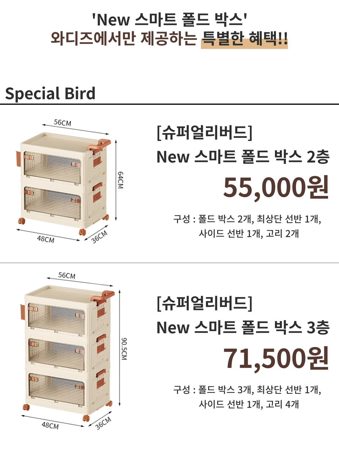 1. 📦 透明折叠收纳箱 - 透明前面设计,折叠结构节省空间 2. 🚚 便捷移动收纳 - 360度旋转轮和手柄,轻松移动 3. 🎁 Wadiz独家优惠 - 仅限Wadiz特别配置和限量供应