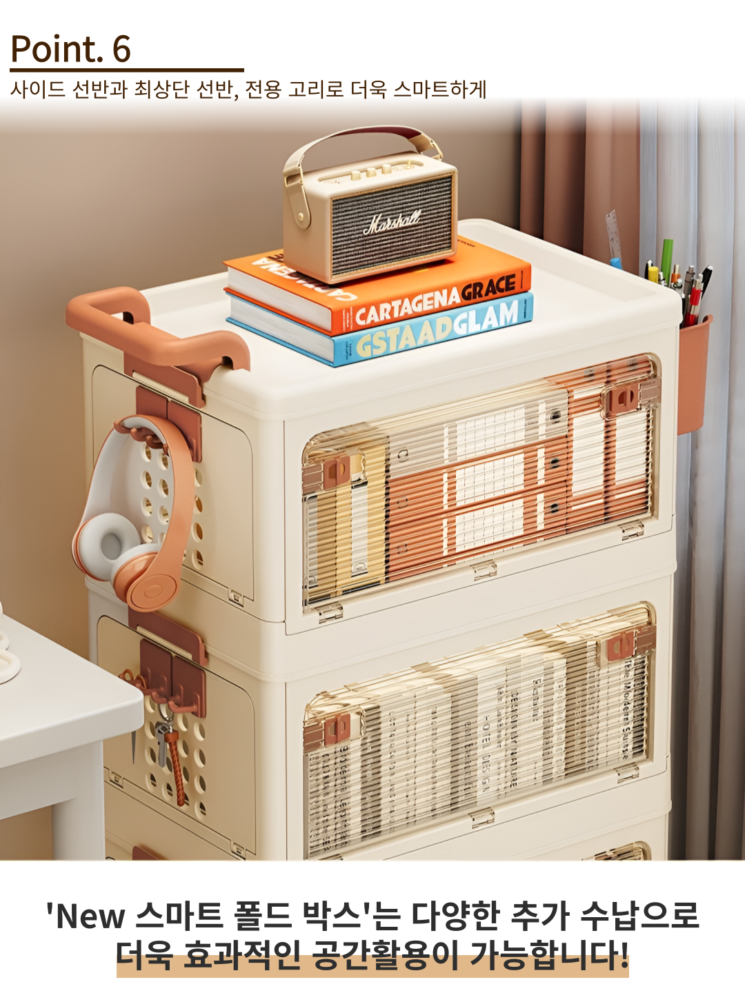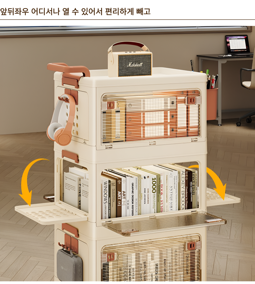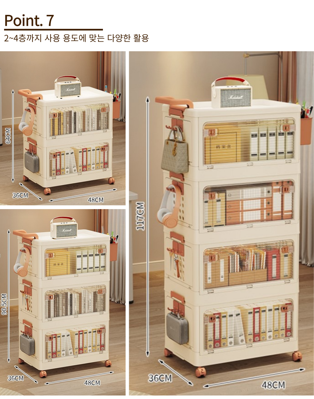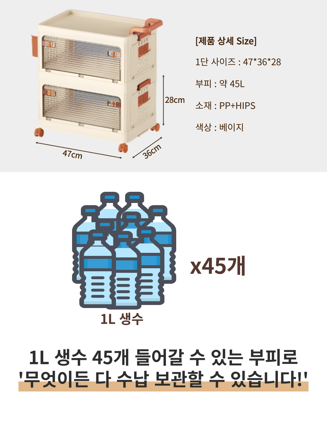 1. 📦 透明折叠收纳箱 - 透明前面设计,折叠结构节省空间 2. 🚚 便捷移动收纳 - 360度旋转轮和手柄,轻松移动 3. 🎁 Wadiz独家优惠 - 仅限Wadiz特别配置和限量供应