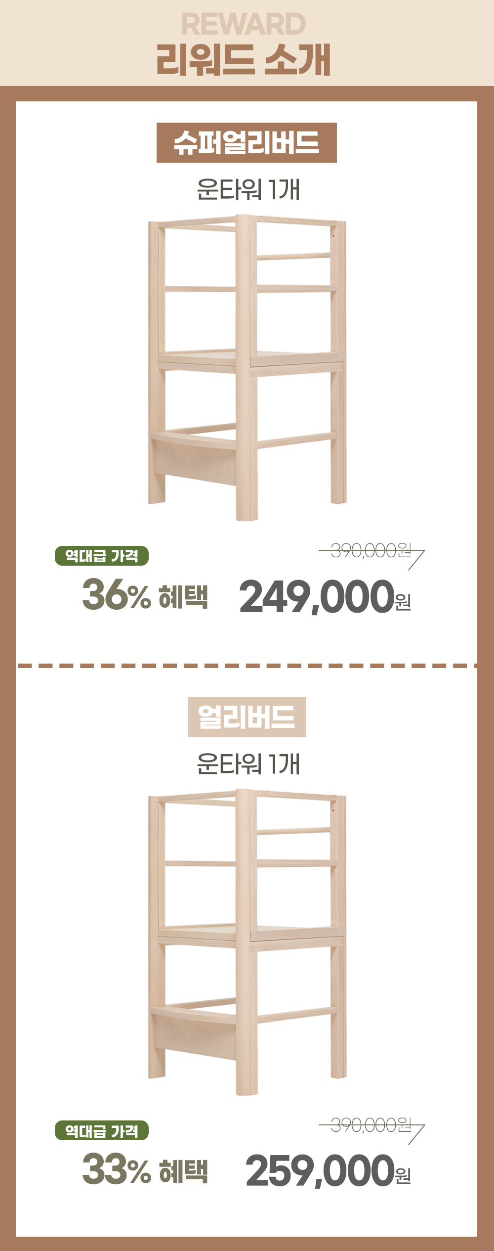 어디서도 볼 수 없는 2 in 1 러닝타워를 와디즈 특별가로 만나볼 수 있는 한정 기회!