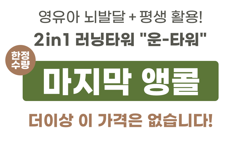 영유아는 시각, 촉각, 후각 등의 감각 자극으로 주변의 환경을 흡수해 자신의 일부로 만들어나가면서, 두뇌발달과 자아형성이 일어납니다. 운타워는 아이 스스로 올라오고 내려갈 수 있도록 안전하게 설계되어 있기 때문에, 아이들이 자신의 의지로 주변 환경을 흡수하고 스스로 성장할 수 있답니다☺️