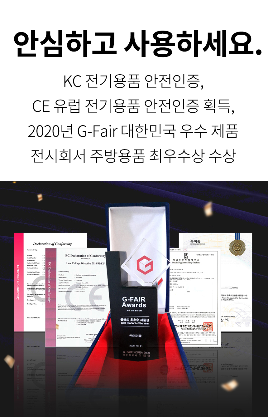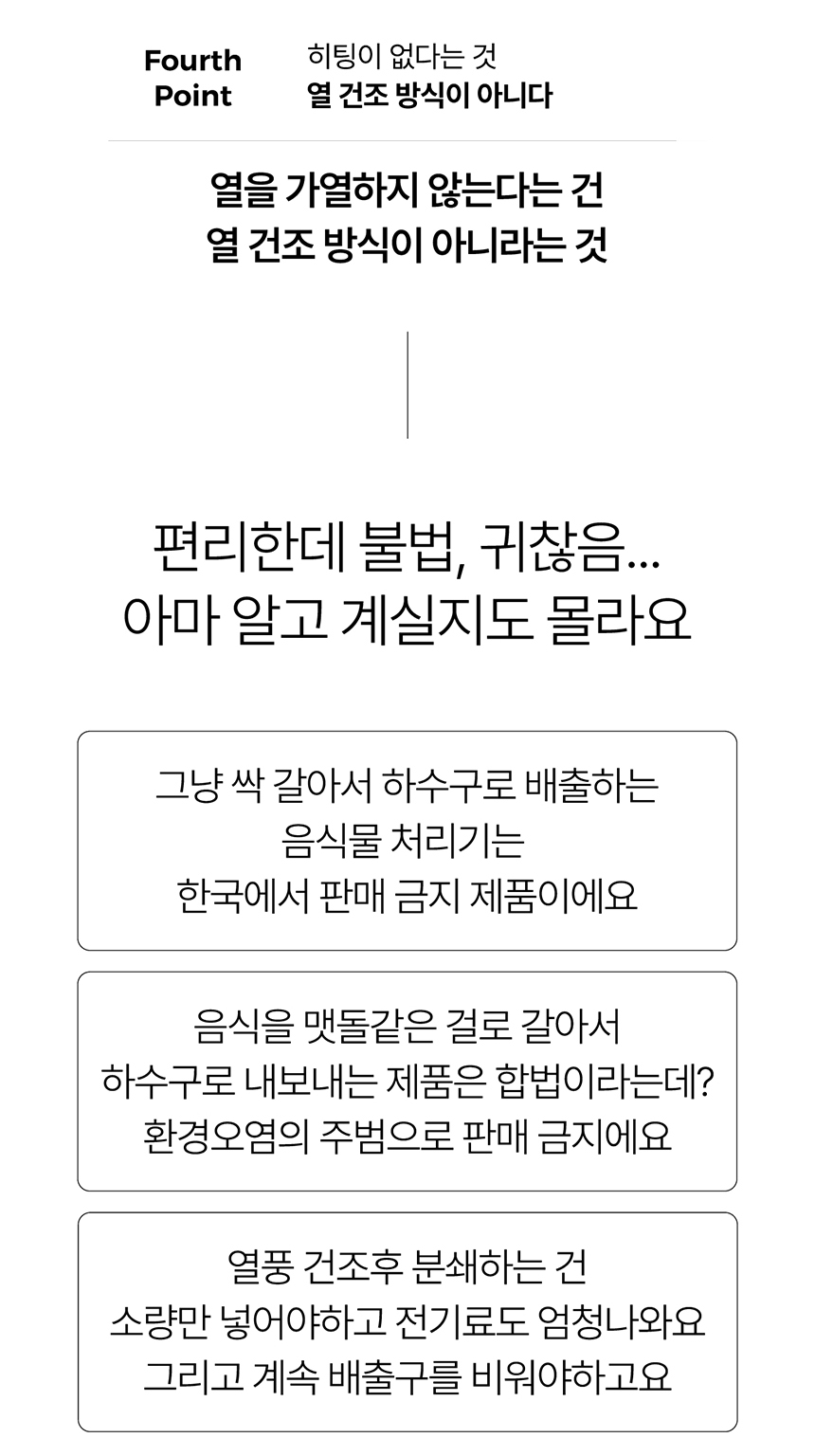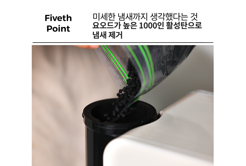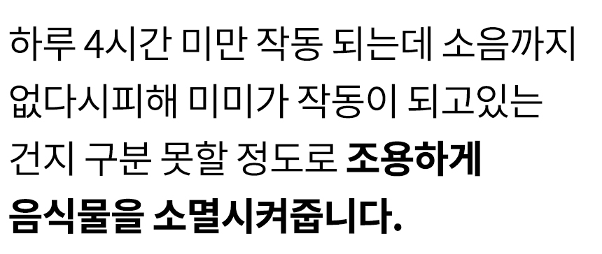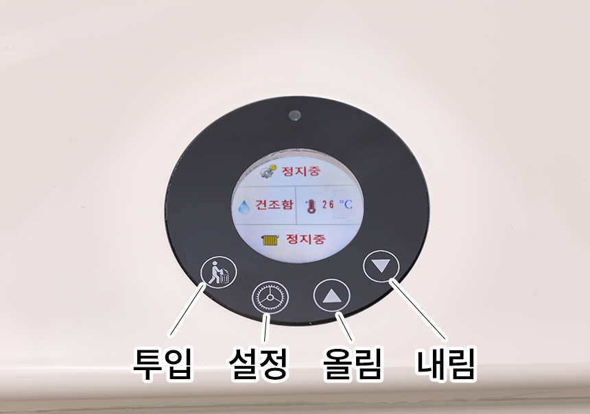 - 투입 버튼 터치하면 10초 후 깜박 거림 후 투입문 오픈(10초간 배기팬으로 내부를 진공상태) 해도 냄새 없음