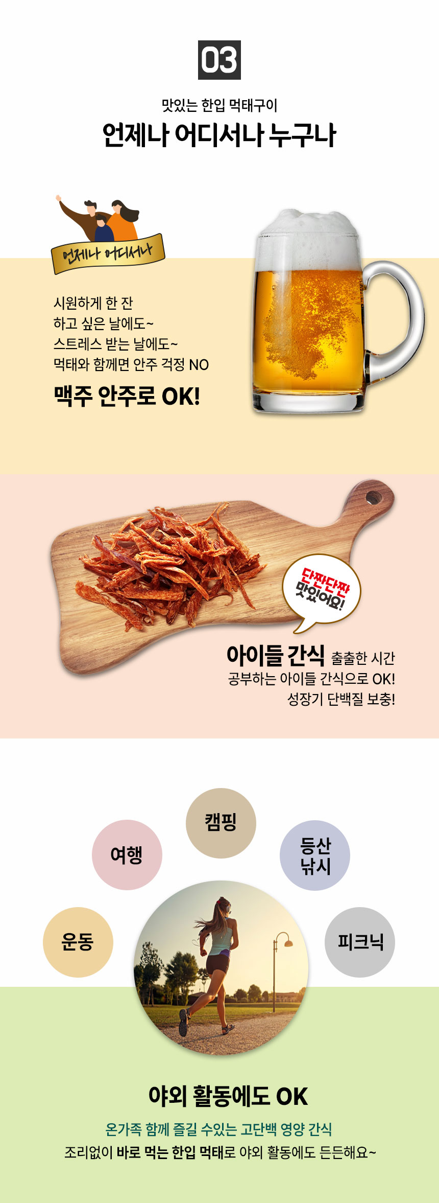 술안주로, 야식으로, 간식으로.