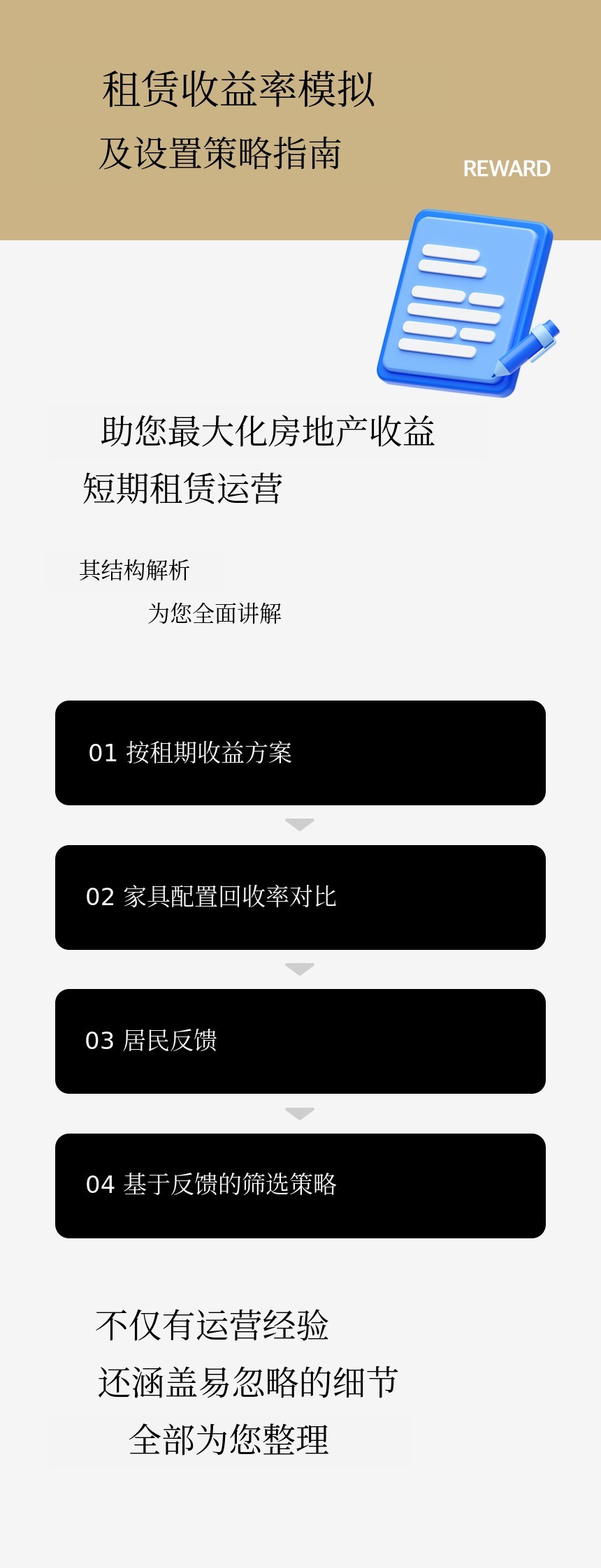 “到目前为止,房地产教育市场上理论很多,但没有内容能回答‘现在用这笔钱该做什么?’这个问题。”