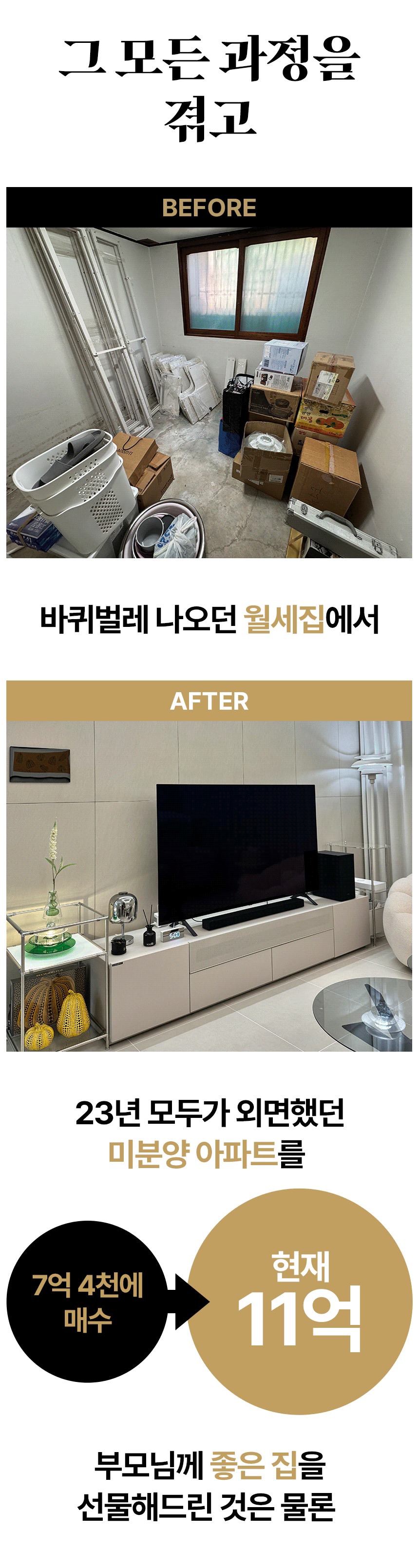 经历了这些失败和试错之后,二十九岁,终于买下了首尔江东区的新建公寓,