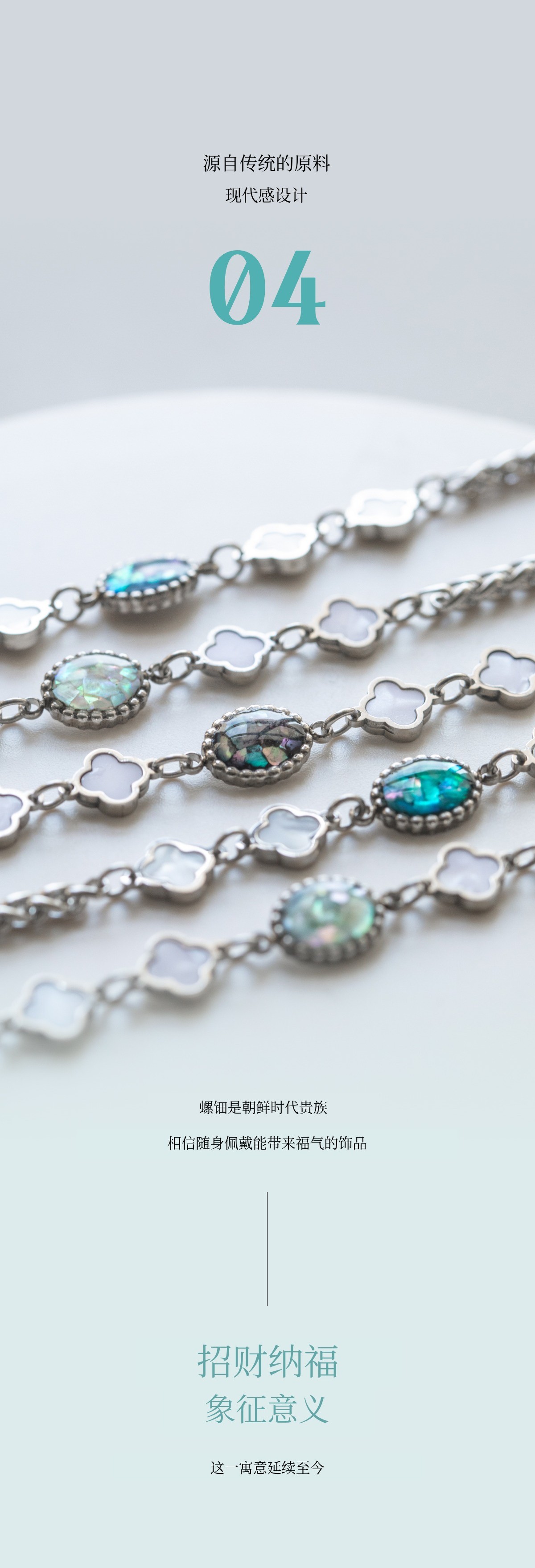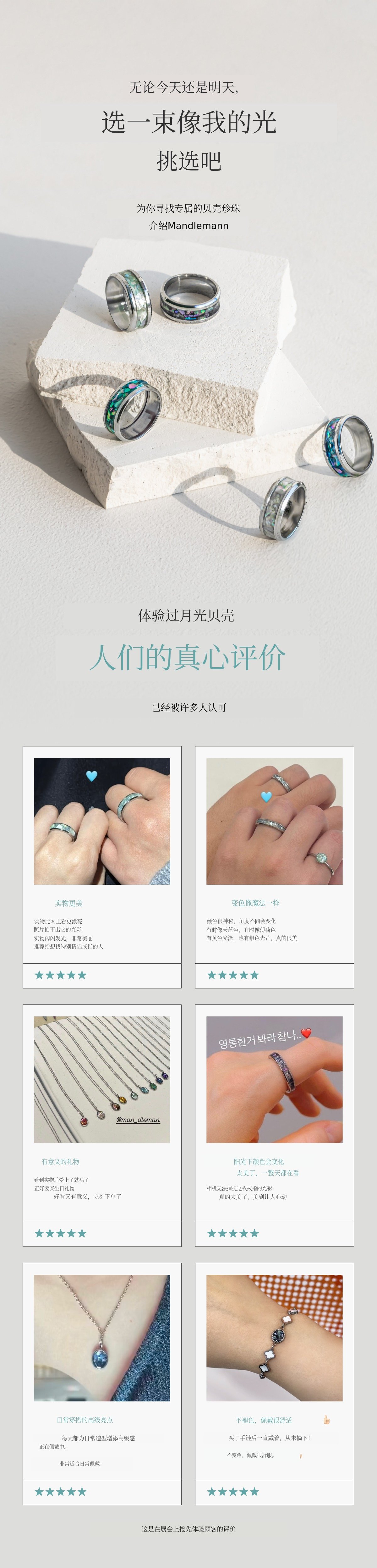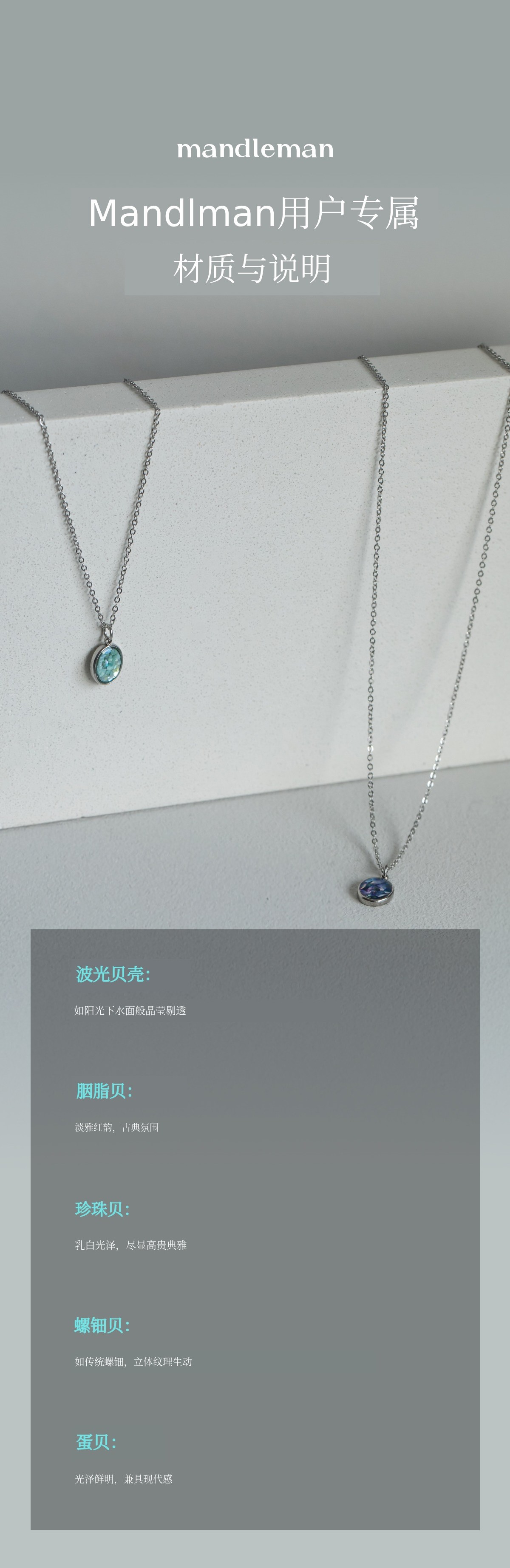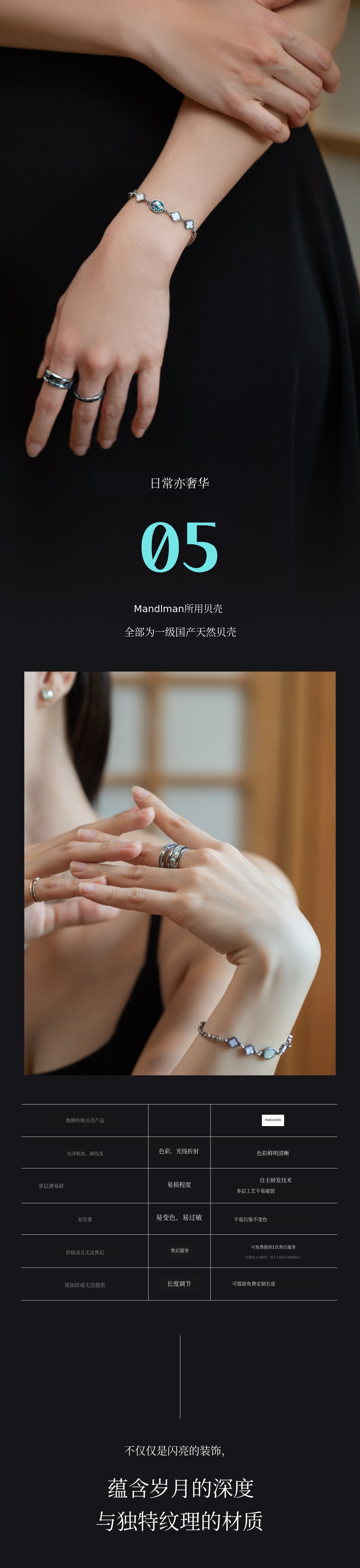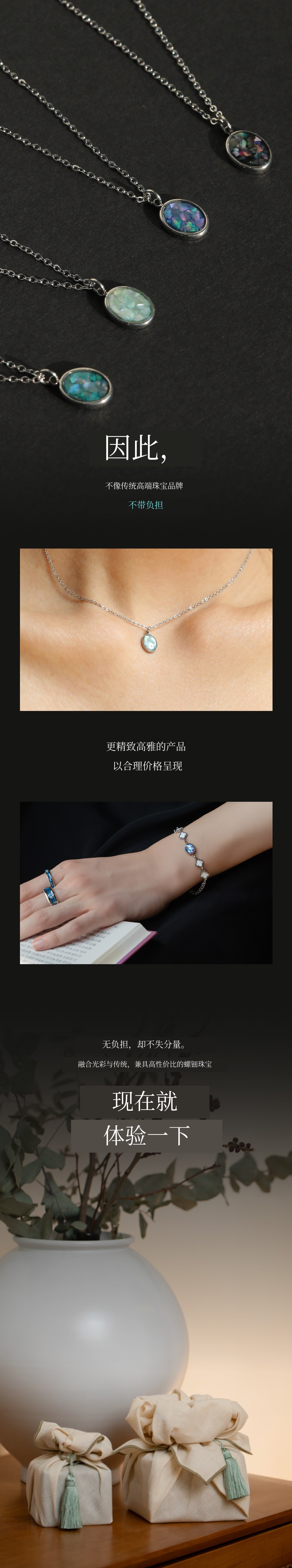 1. 🌟 高端珍珠母配饰 - 传统工艺现代升级,融合高雅与时尚 2. 🛡️ 防变色无过敏材质 - 采用国产天然珍珠母及安全材质 3. 🎁 限量版及定制福利 - 免费调节长度,一次免费售后服务