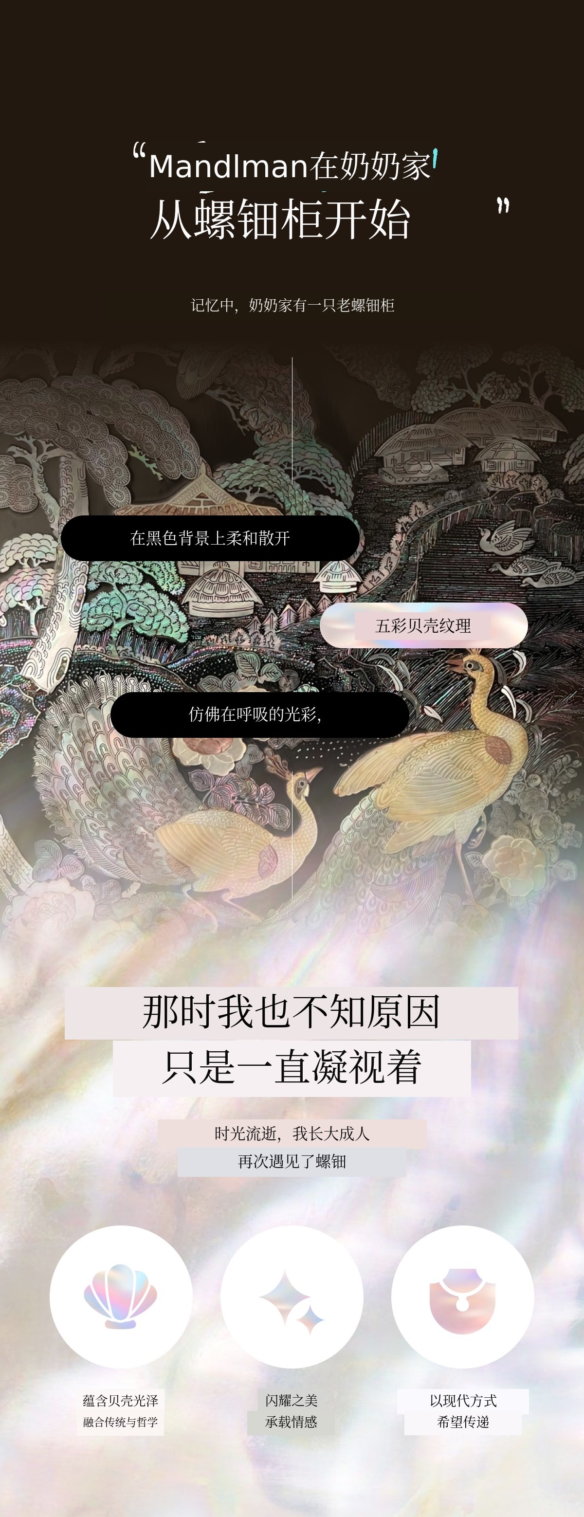 "一片螺钿为您带来优雅的福气。"
