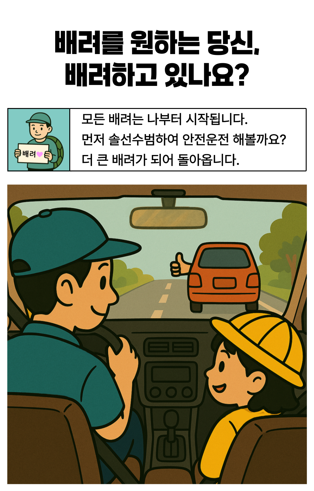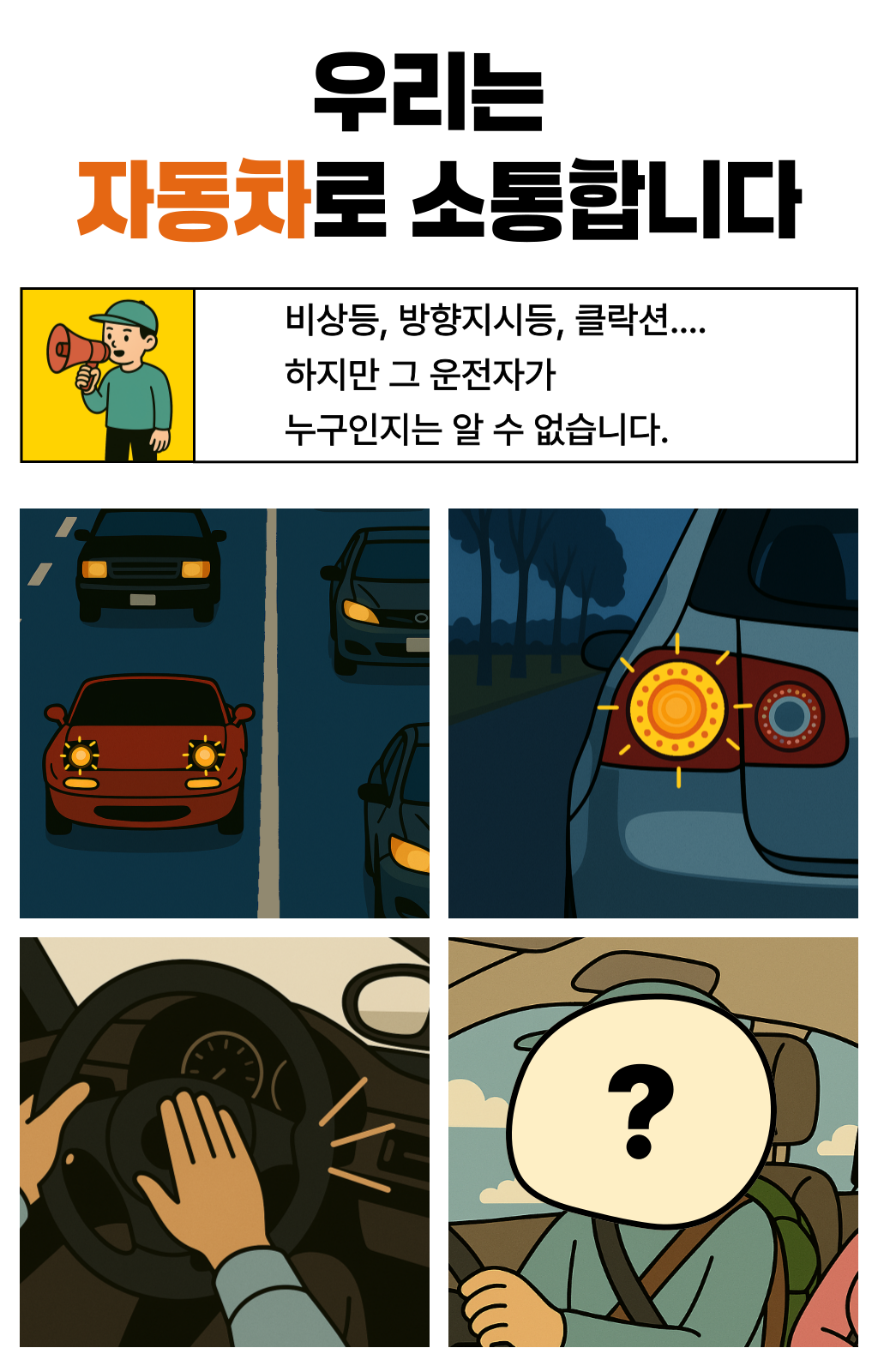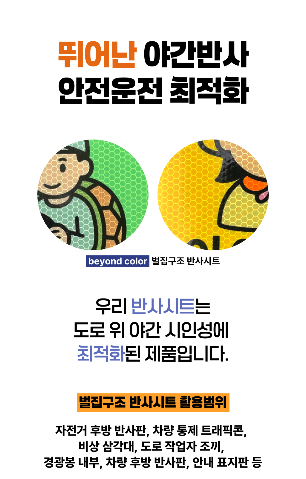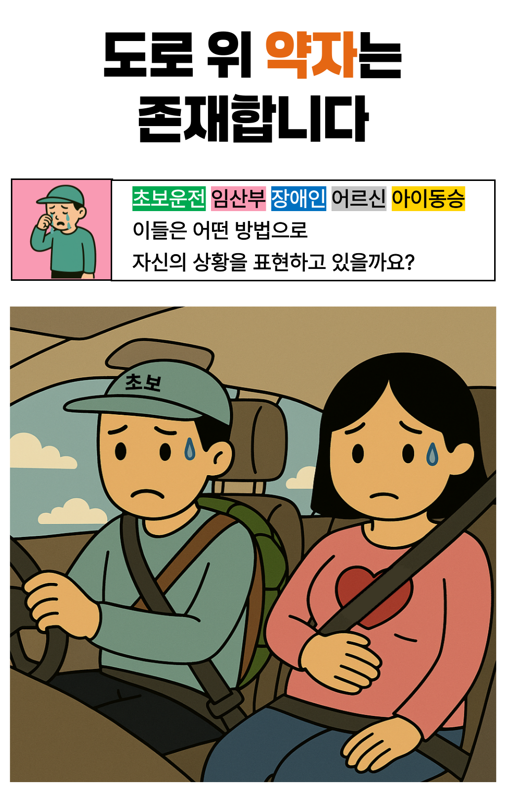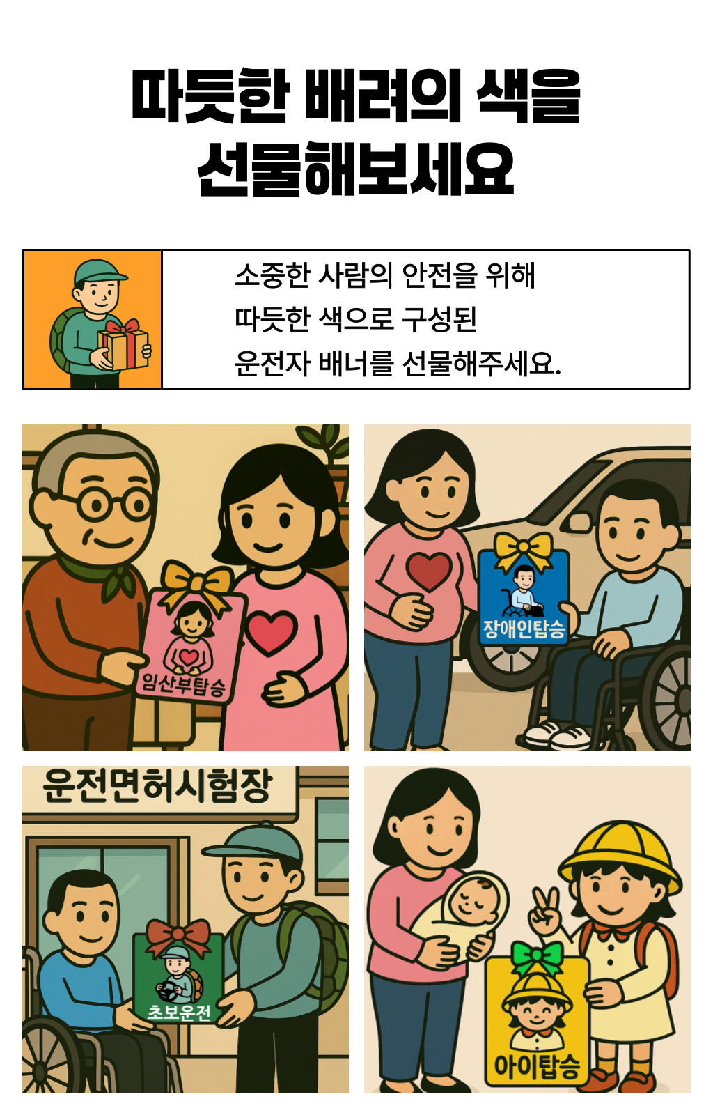 한 차량에게 양보했는데, 그 안에는 노부부가 타고 계셨습니다.노신사분은 창문 너머로 연신 고개를 숙이며 감사 인사를 전하셨죠. 문득 이런 생각이 들었습니다. ‘누구에게나 양보할 수 있지만, 도로 위 약자를 알아볼 수 있다면 더 쉽게 마음이 움직이는구나’라고요. 생각은 저 스스로에게 질문을 던지게 했습니다. ‘그렇다면, 어떻게 하면 더 잘 알아볼 수 있을까? ’복잡한 문구나 의미가 모호한 이미지보다, 한눈에 들어오는 색이라면 그날의 저처럼 생각한 운전자들이 더 빠르고 쉽게 인식하고 배려할 수 있을 것 같은 느낌이 들었습니다. 그렇게 도로 위의 약자를 빠르게 식별하고, 배려로 이어지는 문화를 만들자는 마음으로 비욘드컬러의 첫 프로젝트가 시작되었습니다.