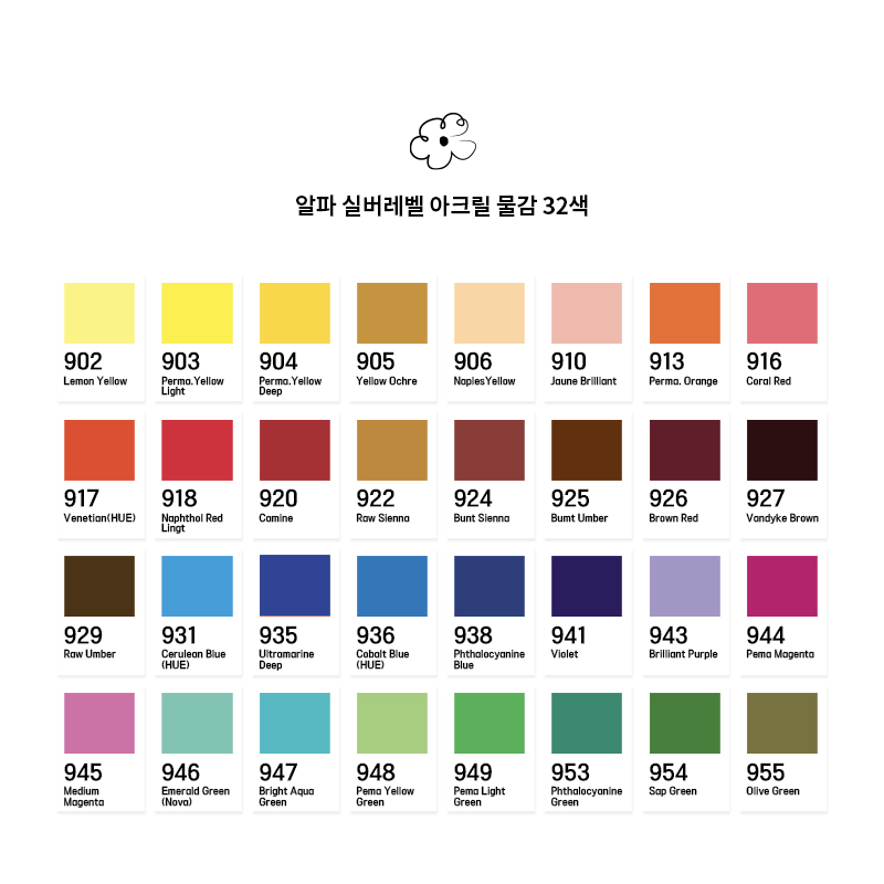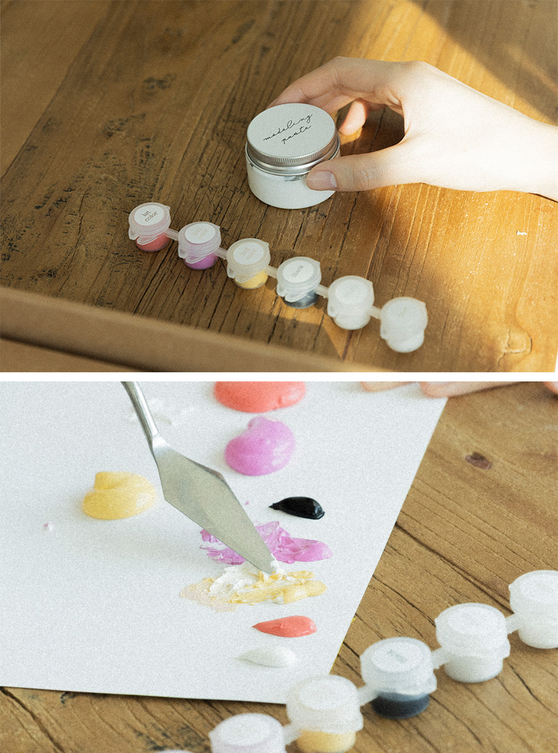 동봉된 종이 파레트 위 쪽에 아크릴 물감을,