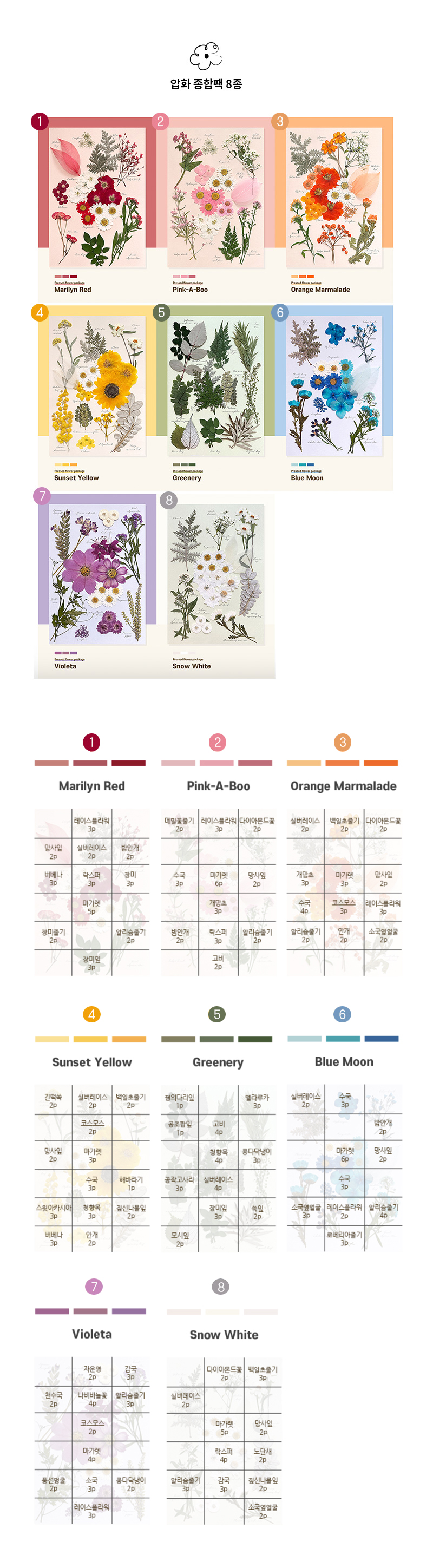 싱싱한 생화를 특수가공한 압화 종합팩으로