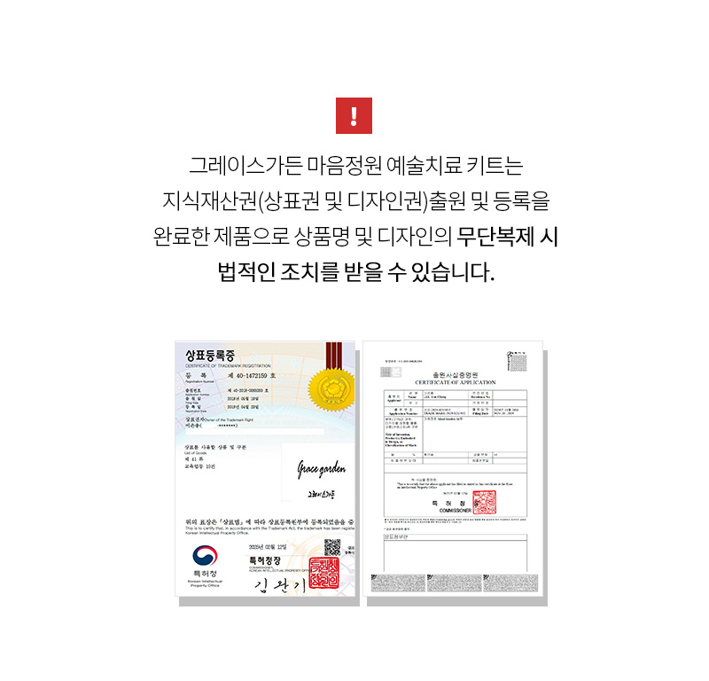 지식재산권(상표 및 디자인) 등록을 마친 제품으로