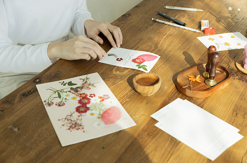 하나 하나 정성스럽게 압화를 붙여나갈 때