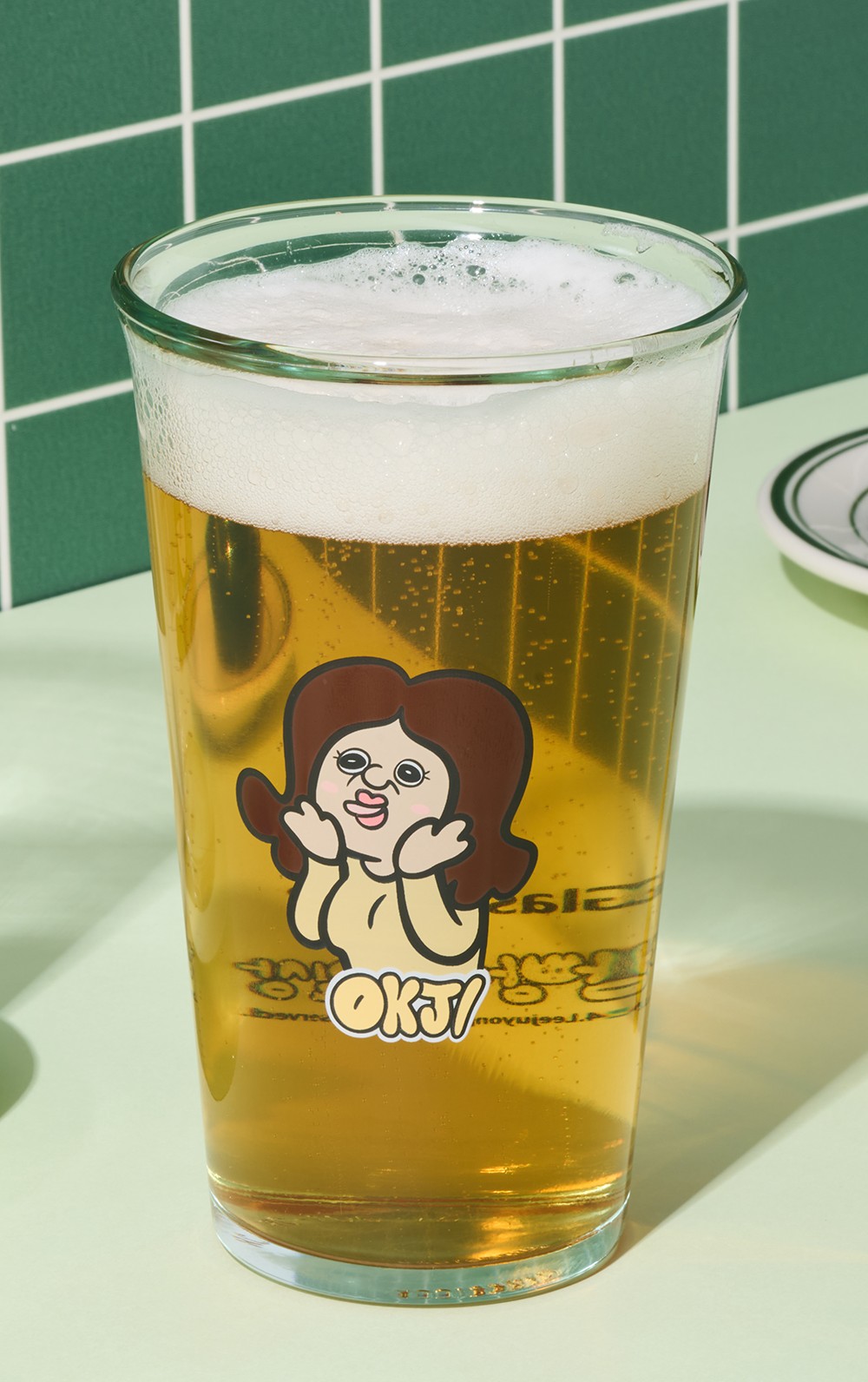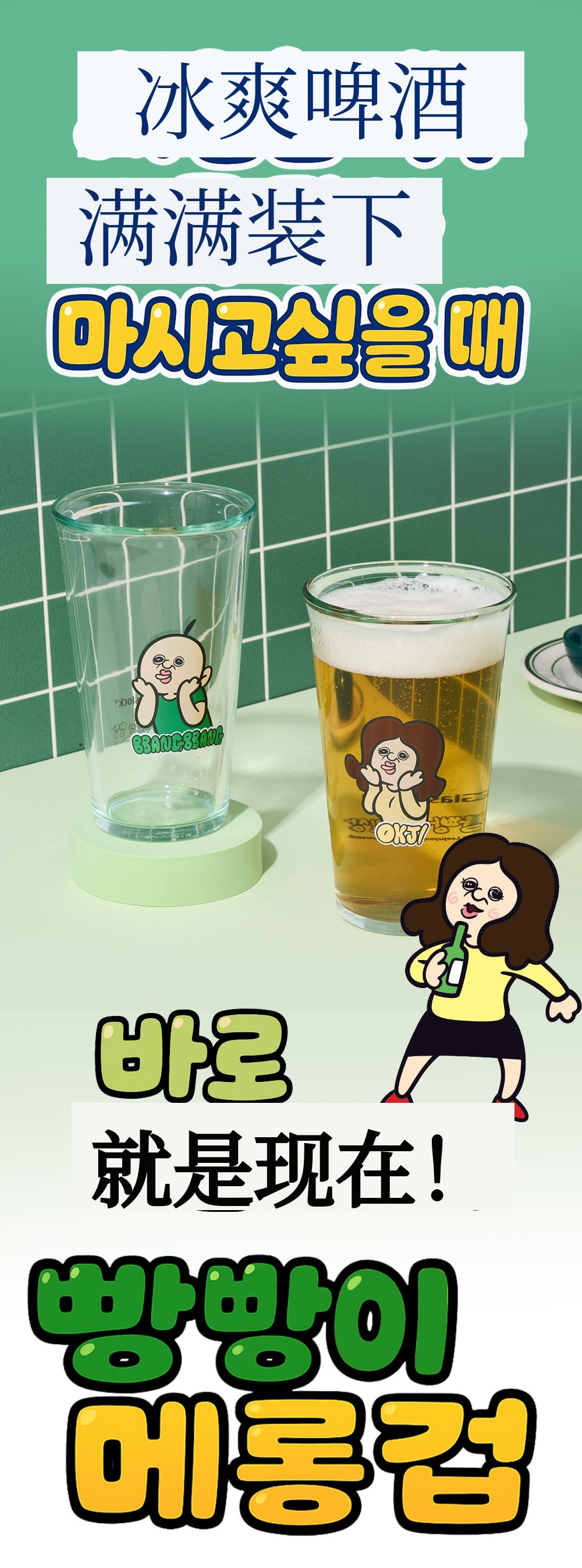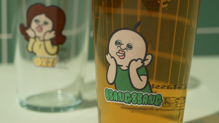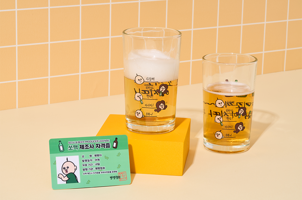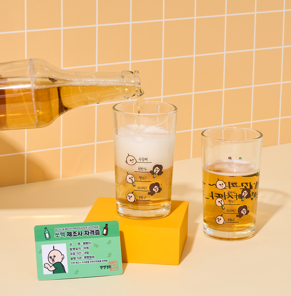 杯子上将烧酒的比例分为5个阶段并标有刻度。每个比例上都写有胖胖的感性文句。