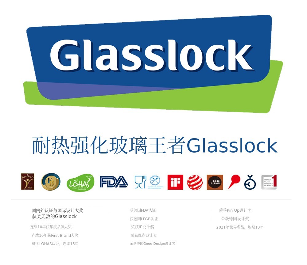 Glasslock是基于1967年成立的SGC Solution积累的经验和技术,经过4年多的研究,于2005年诞生的韩国首个耐热钢化玻璃密封容器品牌。